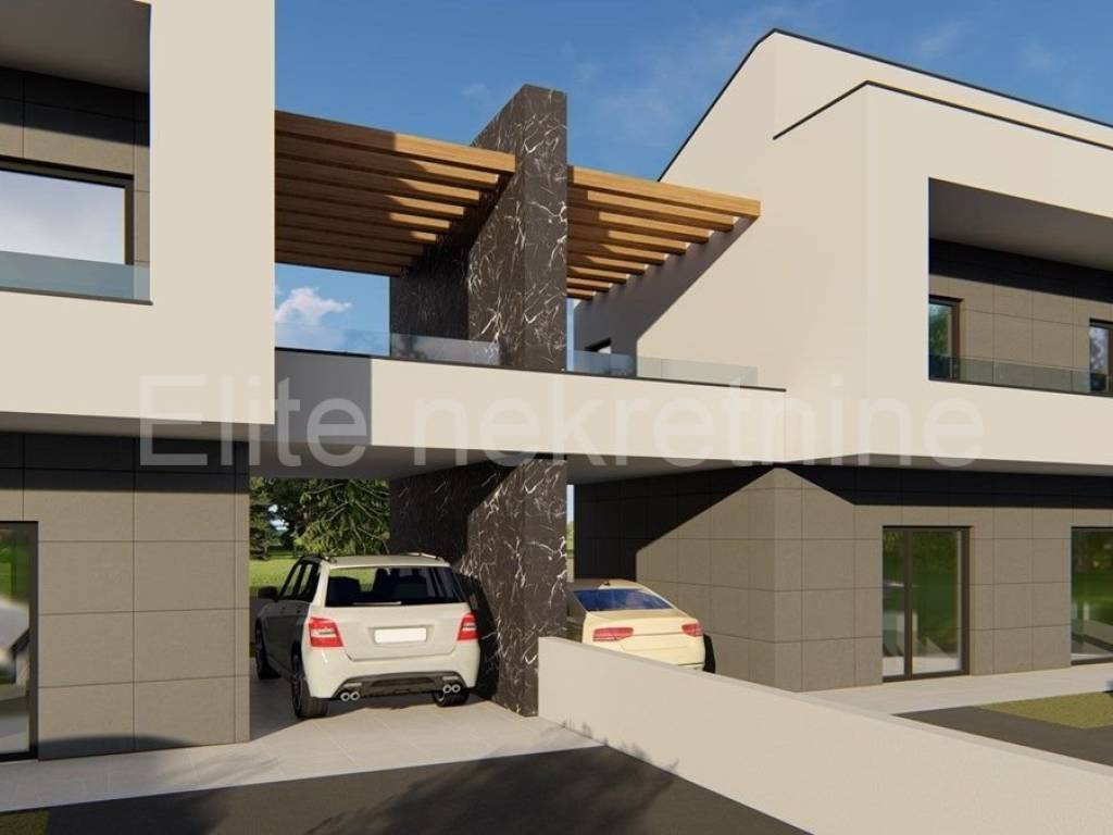 From Pula, the largest city of Istria, in Marcana, only 12 km away, this modern villa with a swimming pool on a plot of 450 m2 is for sale.It is part of a semi-detached villa; two identical villas, each with a pool, separated by a common wall.