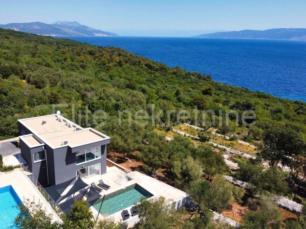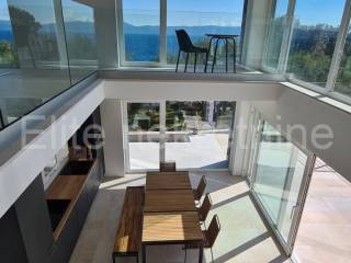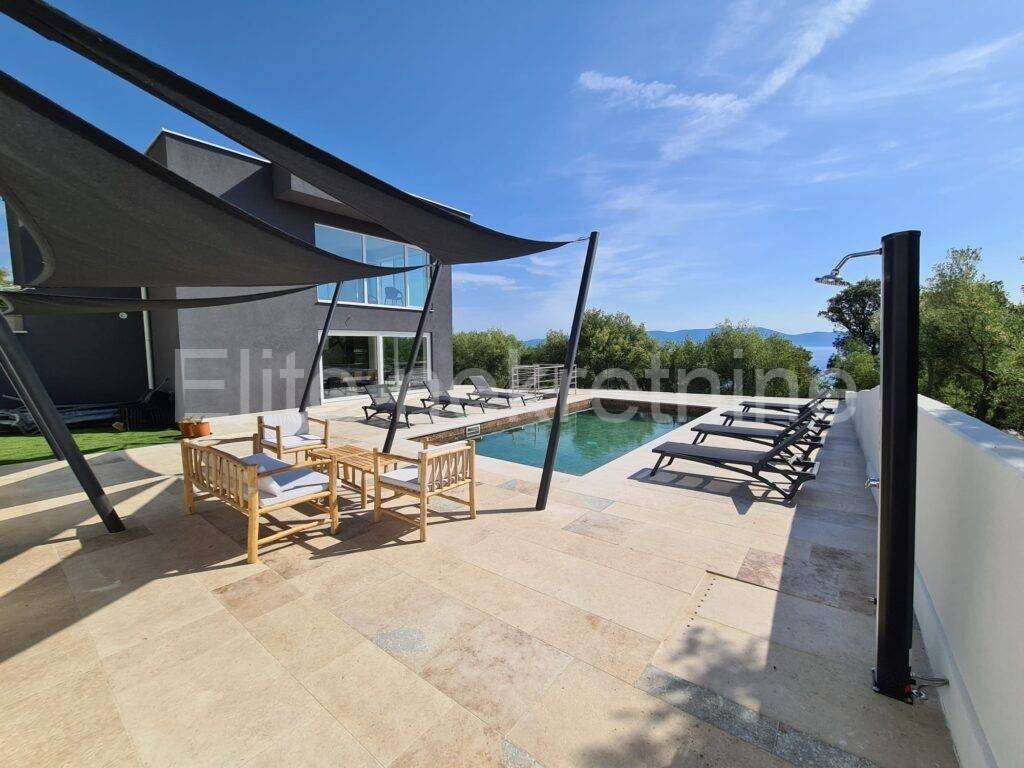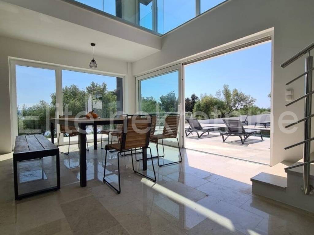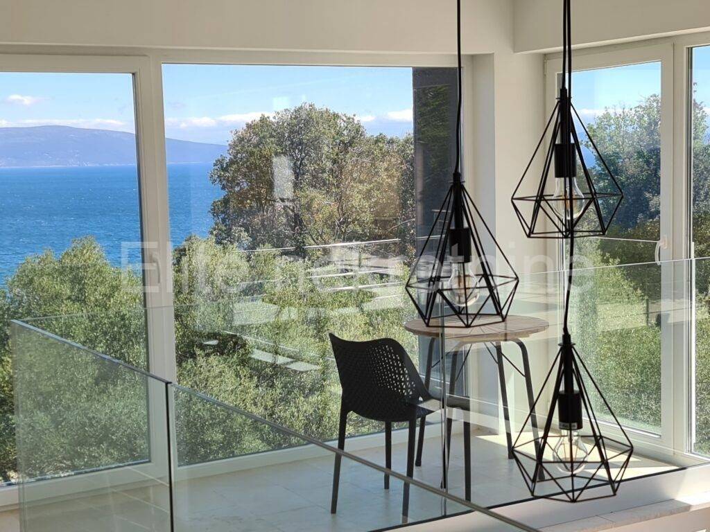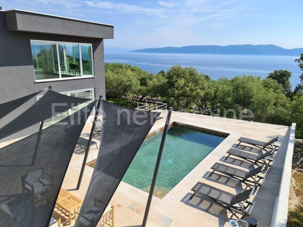 In a small town near Labin, where vacation homes already predominate, there is this villa with a swimming pool and an open view of the sea.