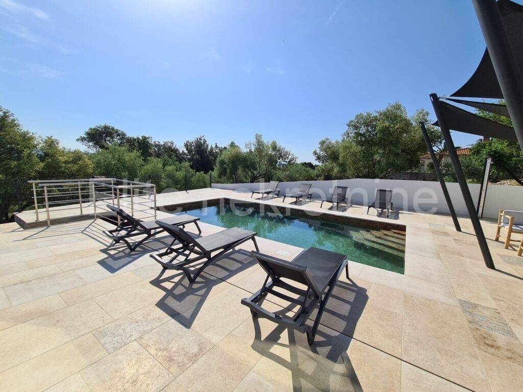 The landscaped exterior of the villa, where the swimming pool is located, measures 4x8m with a movable dome that allows the swimming season to be extended and protects the pool from external pollution. The construction for 4 sails is located in the pool and will provide future owners with rest and enjoyment in the shade.There is also a heat pump for heating the pool