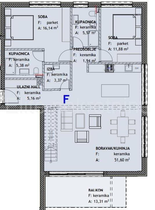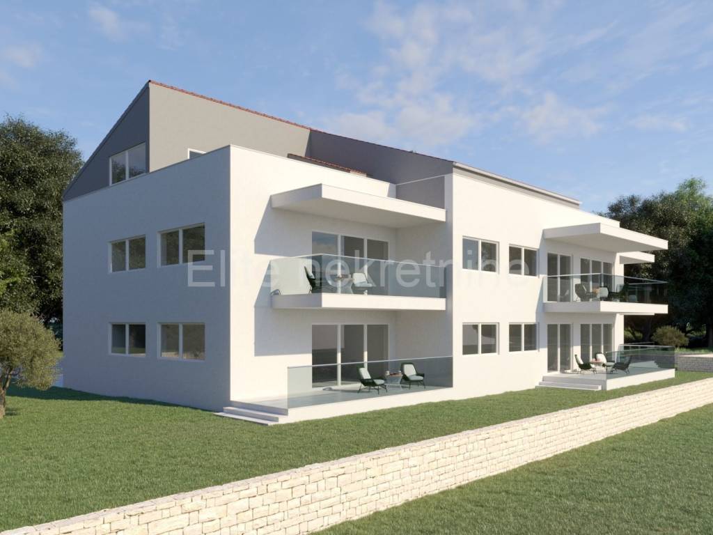 In beautiful Rovinj, known for its endless beaches and pine forests, there is this project of newly built apartments.The building is small and consists of 6 residential units.The area of the apartment extends over two floors - the first floor with elevator access and the attic. On the first floor there is an open space kitchen with a living room and dining room, two bedrooms, two bathrooms, a toilet, two corridors and a terrace.The staircase from the living room leads to the attic where there are two more bedrooms, a bathroom and a terrace with an enchanting view.In the basement of the building there is a garage where the apartment has two parking spaces and a storage room.