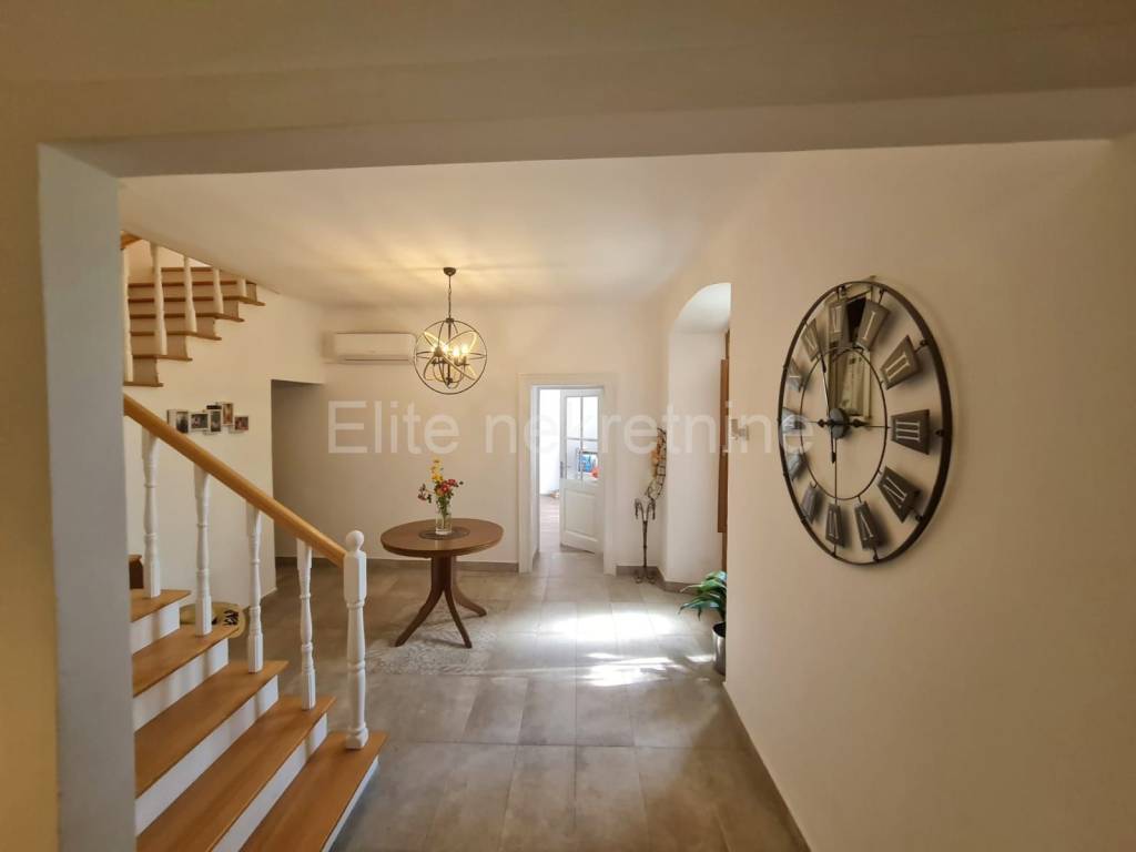 The house is located in Nedešćina and has 110 m2 of living space on two floors.The ground floor has a kitchen and dining room in one room, living room and large hallway and storage and on the first floor are three large bedrooms. On the mezzanine floor is a large bathroom with separate toilet and hallway.The spacious outdoor stone terrace is surrounded by a stone wall and century-old trees and a vine pergola.The interior of the house was renovated in 2016.