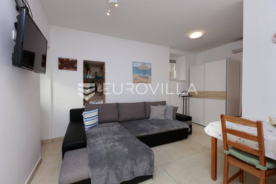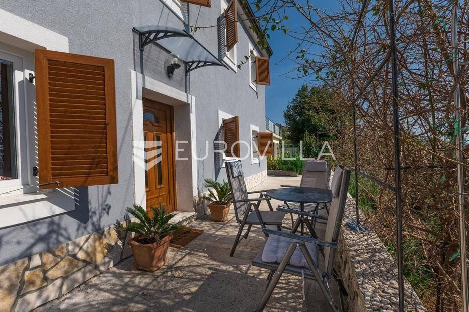 Ova kamena ljepotica s debelim zidovima od 80 cm koji čuvaju svježinu ljeti i toplinu zimi potpuno je obnovljena 2025.: novo krovište, oluci, fasada, dva kaminska dimnjaka, drvene škure i PVC stolarija.Sastoji se od prizemlja gdje se nalazi kuhinja s blagovaonom, dnevni boravak s pećicom na drva, hodnik te unutarnje stubište koje vodi na prvi kad gdje su dvije svijetle i prostrane spavaće sobe (u drugoj je već sprovedena instalacija za potencijalni WC). Svaka prostorija u ovoj kući ima otvoreni pogled na more. Iako je sve novo, kuća i dalje odiše posebom toplinom.Uz kuću dolazi samostalni, opremljeni studio od 25 m² - spreman za najam ili goste. Okućnica od 1.015 m² nudi šest parkirnih mjesta, zemljište iza kuće s alatnicom i dodatni prostor za potencijalnu gradnju.Za boravak vani, tu su dvije terase: jedna skrivena iza bogate bugenvilije za mirnu jutarnju kavu, druga otvorena s pravim bunarom kao detaljem - idealna za vanjsku zonu za opuštanje, roštilj i večeri pod zvijezdama.Održavana s ljubavlju, sada je spremna za nove uspomene, s prostorom za daljnji razvoj.Za više informacija ili razgled, slobodno nas kontaktirajte.