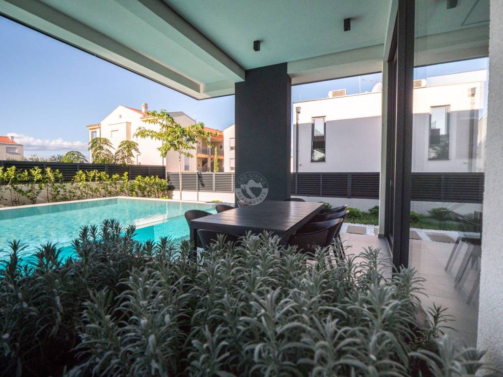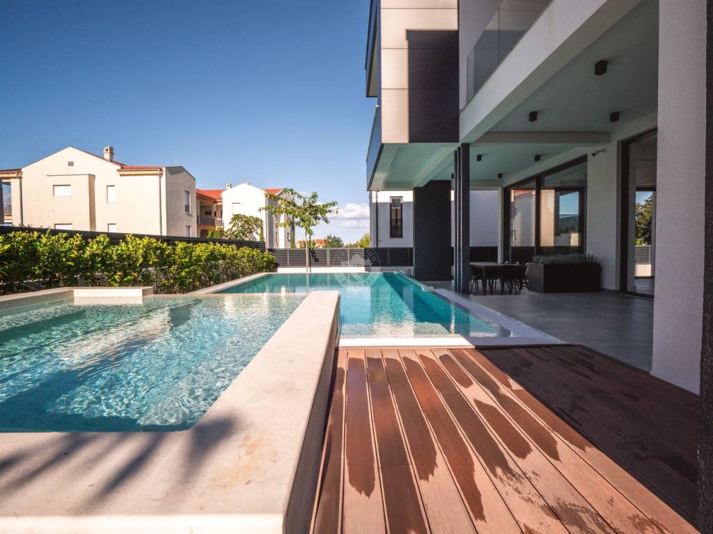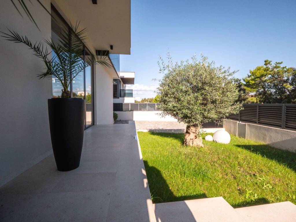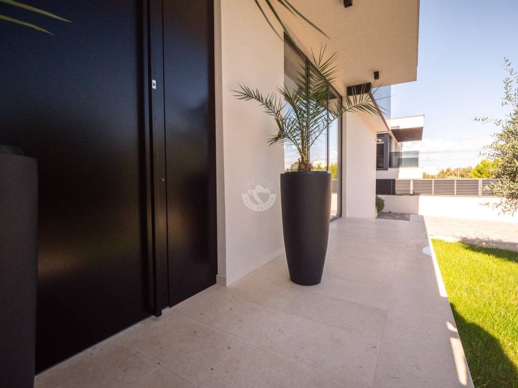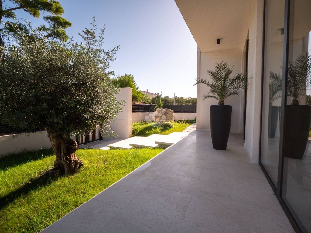 In the idyllic coastal town of Privlaka, just a few kilometers from Zadar, stands this exceptional detached villa – a true masterpiece of modern architecture that combines Mediterranean ease of living with elegant residential comfort.