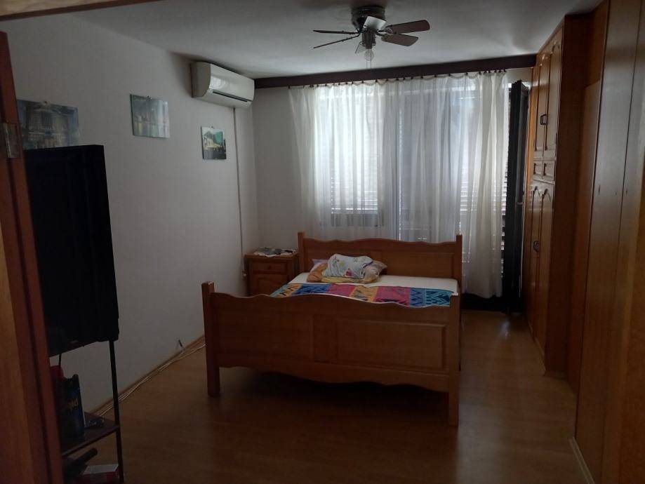 Na prvom katu nalazi se drugi stan koji se sastoji od hodnika, kupaonice, wc-a, blagovaone s kuhinjom, dvije spavaće sobe i terase, sveukupne površine 54,70 m2.