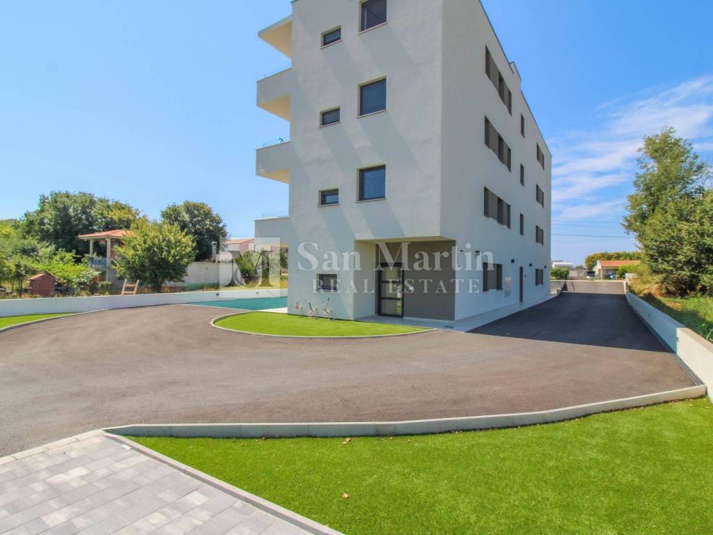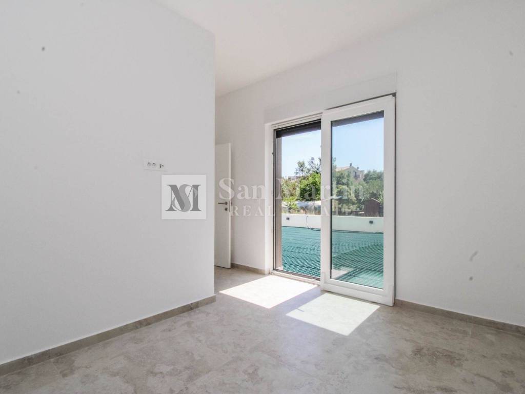 In the vicinity of Poreč, just three kilometers from the first beaches, in a modern building with an elevator, there is a ground floor apartment for sale with a total area of 76.27 m2. The property consists of an entrance hall, living room, open concept kitchen and dining room, two bedrooms and two bathrooms.