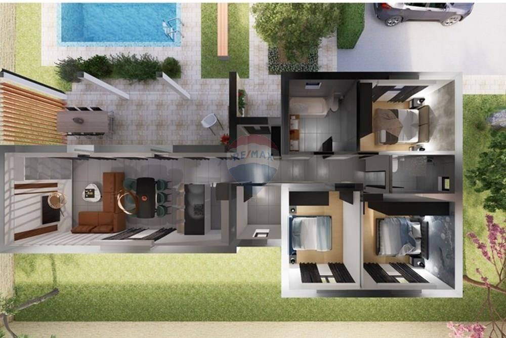 A low-energy prefabricated house or a house of classic construction will be built in Murvici. The start of construction is planned after the summer of 2025, and the completion of construction in early 2026. The net area of the house is 121 m. The house consists of a living room, kitchen, 3 bedrooms, 2 bathrooms and a hallway. The plot area is 582 m and there is a swimming pool within the house. The environment is fully landscaped and the plot is surrounded by a fence.