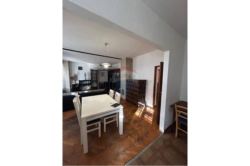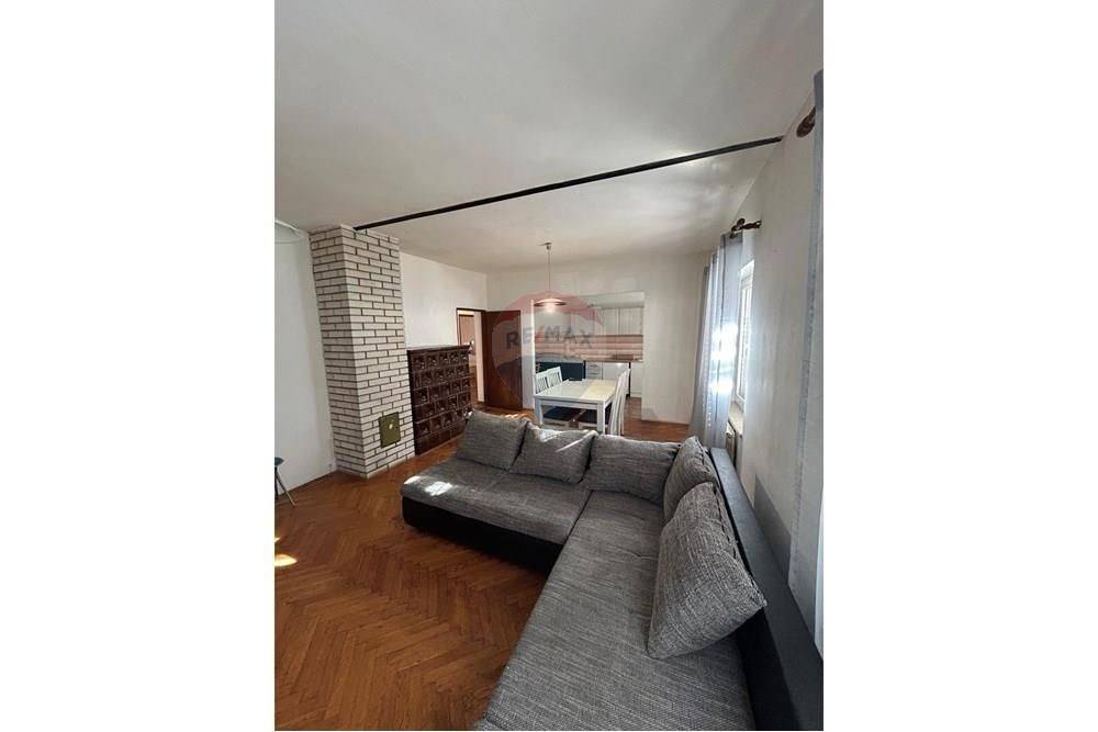 The apartment consists of an entrance hallway, THREE bedrooms, a kitchen, a dining room, a living room, a bathroom, a toilet, a spacious terrace (approximately 30 m), and an attic.