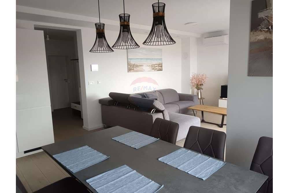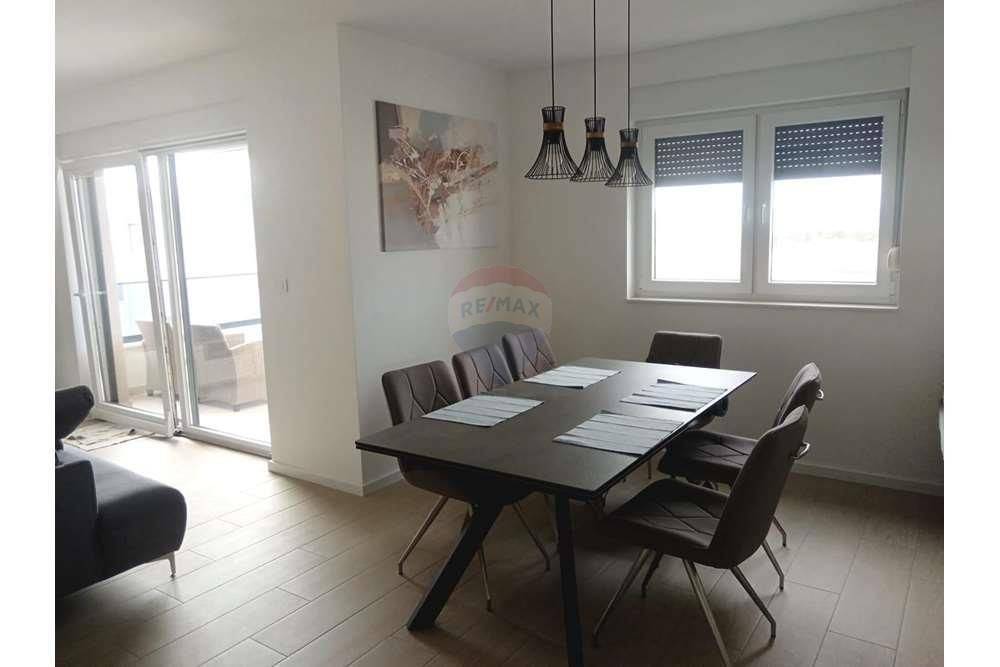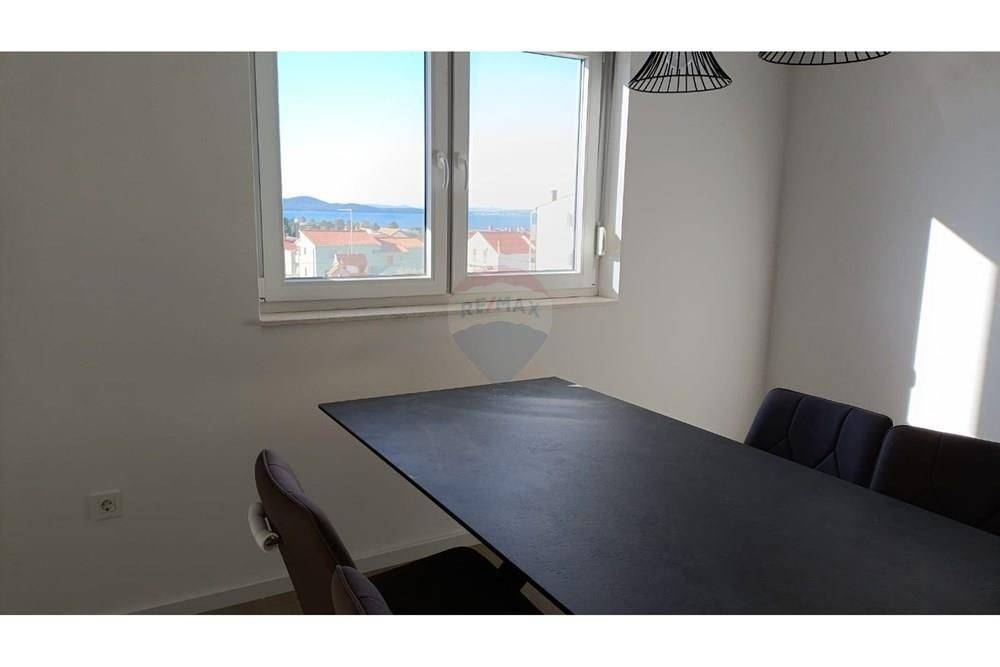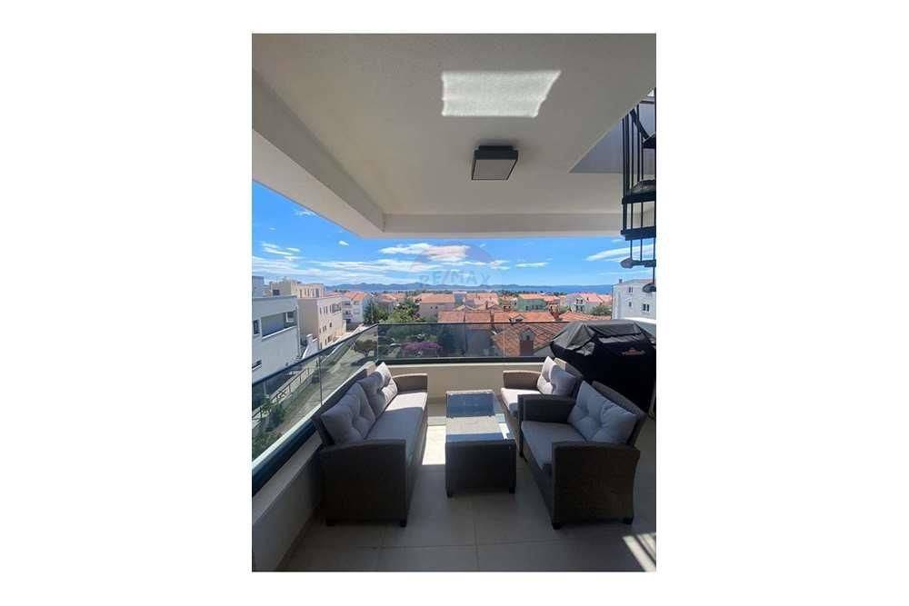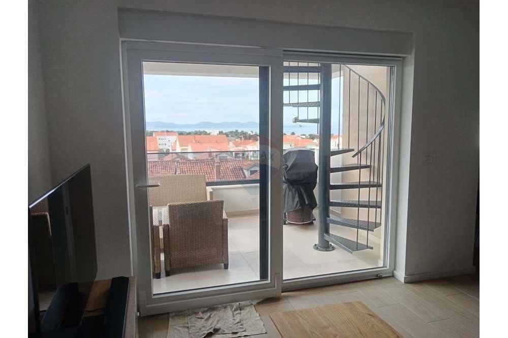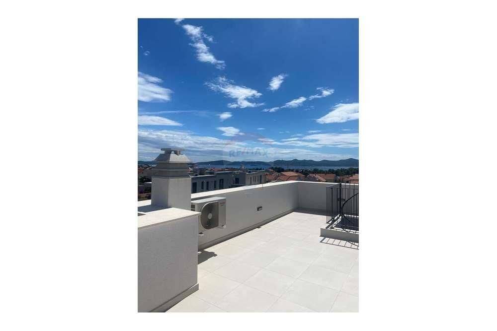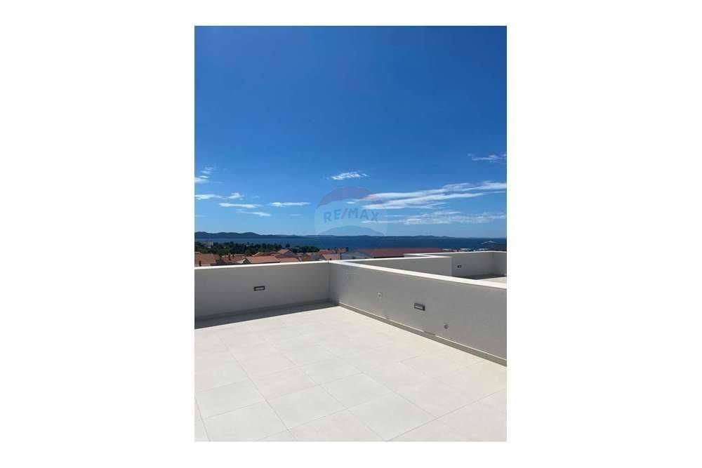 A fully furnished luxury penthouse in Dikl with a roof terrace and a panoramic view of the sea is for sale. The apartment is located on the second floor of a luxury building with a total of 6 residential units. It consists of a spacious living room, kitchen and dining room also with a view of the sea, bathroom, toilet, 2 bedrooms, a covered balcony and a roof terrace that can be reached from the balcony of the apartment and from which there is an incredible view of the Zadar archipelago. The apartment also has 2 outdoor parking spaces and a storage room. The total usable value of the apartment is 100.63m2. The apartment is located in a quiet and exclusive part of Dikla, just a few minutes' walk from the beach. All other facilities (shops, restaurants) are located in the vicinity of the apartment. This is an ideal opportunity for those looking for a luxurious apartment in a quiet area with an unforgettable view and yet close to all amenities.