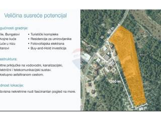 Prodaje se građevinsko zemljište sa pogledom na more. Zemljište ukupne veličine 13,187 m2, od kojih je 11,171 m2 u građevinskoj zoni, nalazi se u Bilicama pokraj Šibenika.