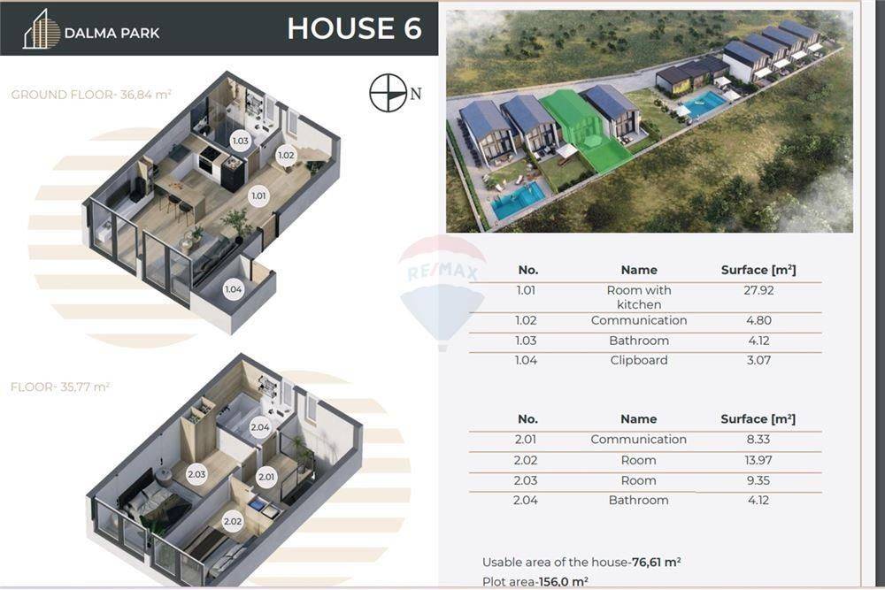 We offer the beautiful property Dalma Park, which consists of 8 houses located next to the forest with a view of the Velebit mountain, only 30 minutes away from Zadar airport. The whole thing is designed in a modern, minimalist style, while referring to local Mediterranean traditions. Thanks to this shape, Dalma Park houses do not burden the observer and allow him to fully appreciate the surrounding nature. Outdoor terrace 55m2.