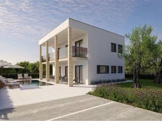 The house, with a surface area of 166m2 and a plot of 544m2, is currently under construction and already delights with its view of olive trees and the sea. Close enough to the sea, 350 meters from a beach, yet far enough to enjoy privacy and peace undisturbed.