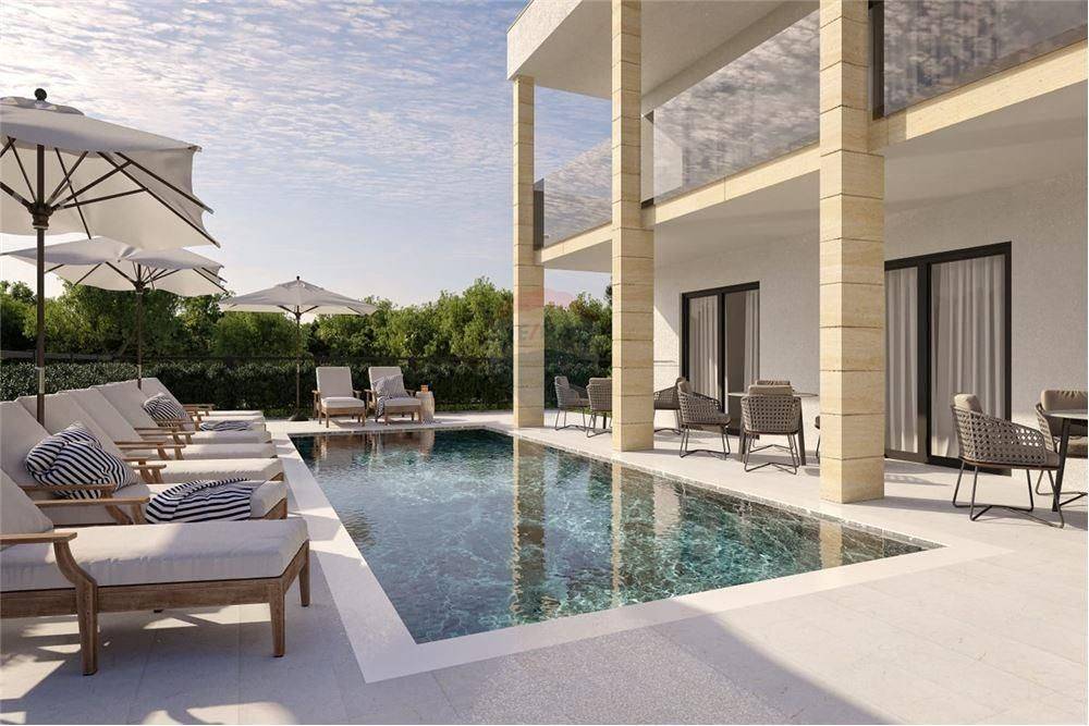 The ground floor consists of a spacious living room, kitchen, and dining area - open concept, one bedroom, bathroom, and an additional toilet. The living area is connected to the yard by few glass walls and has direct access to the pool, meaning extended relaxation continues at home after the beach.