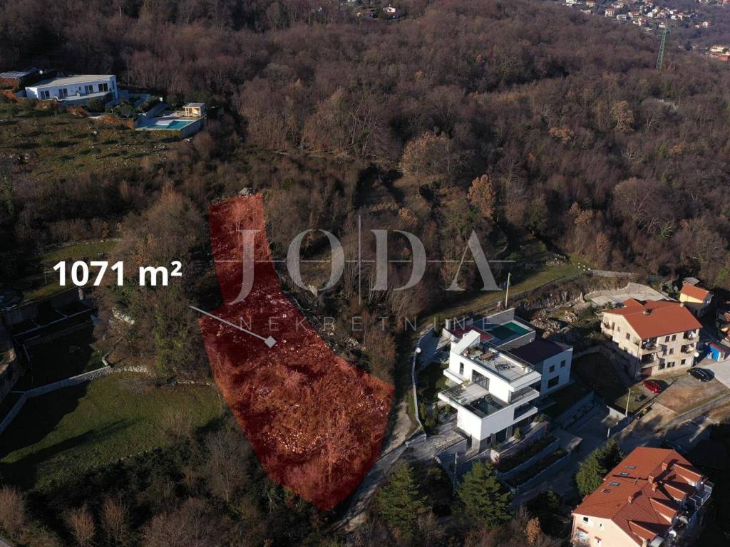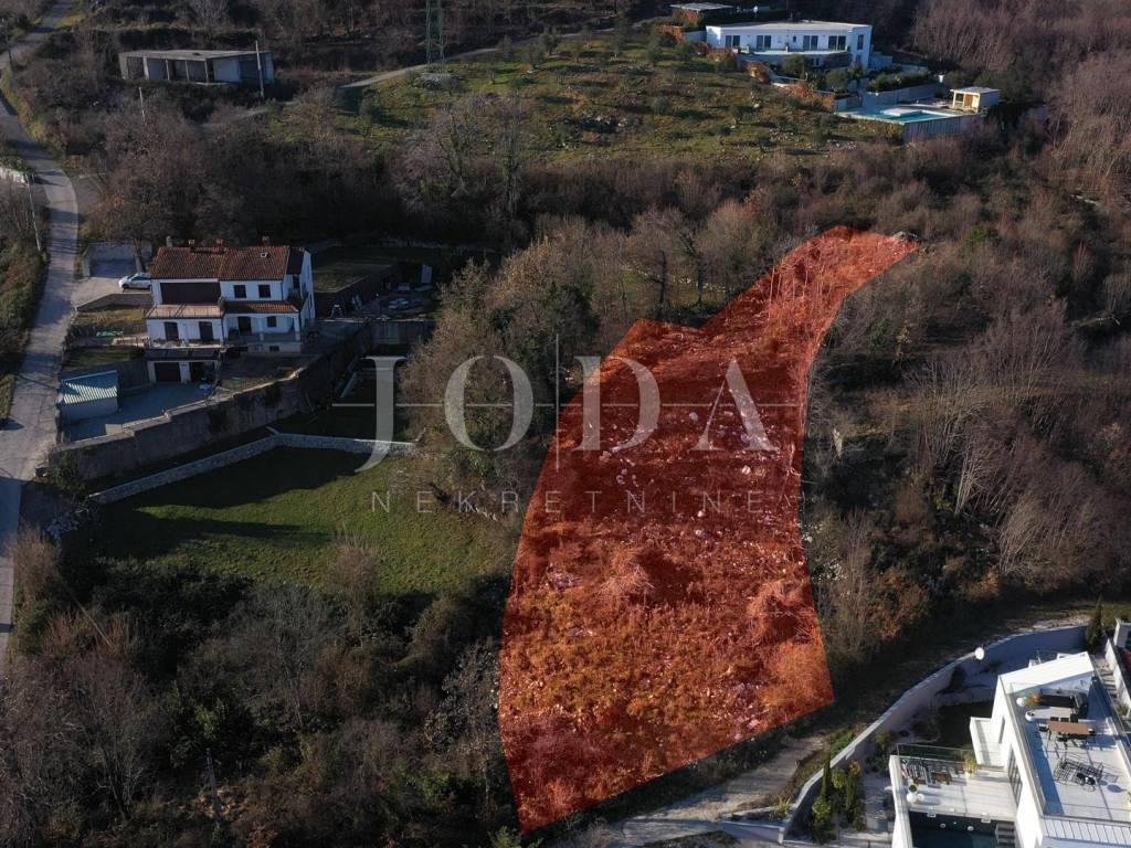 Građevinski teren sa prekrasnim pogledom na Kvarnerski zaljev. U laganom uzdizanju od ceste teren sa svaki metrom dobiva više na spektakularnom pogledu.malo uvučeno od glavne ceste pruža intimu,ali uz svu infrastrukturu i u jednoj već formiranoj mikrolokaciji.