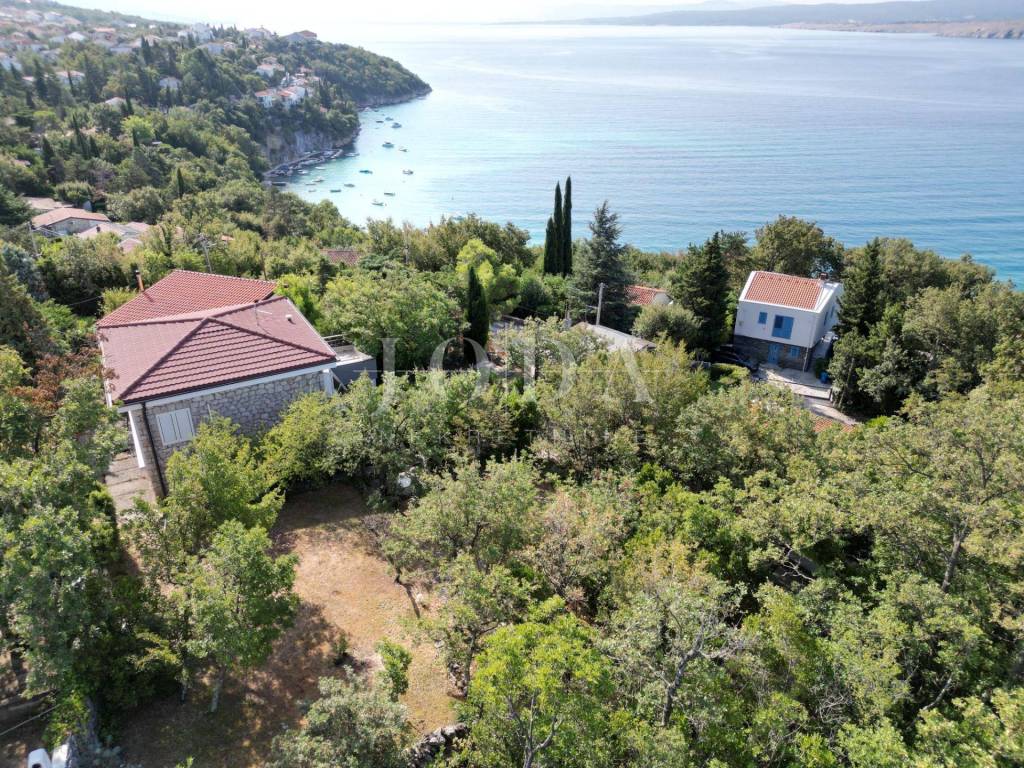 The house consists of a kitchen, bathroom, living room and dining room (with access to the terrace and with a view of the sea) on the ground floor, and on the first floor there are a bathroom, two larger bedrooms and a children's room. The ground floor leads to a covered terrace, and the master bedroom upstairs leads to a large terrace with a beautiful view of Kvarner. Behind the house there is a storage room of 8m2 and below it a garage (with electricity and water) in front of which another car can fit. A large stone barbecue with a stone table for socializing is also located on the beautifully landscaped garden, which offers perfect privacy and plenty of shade.