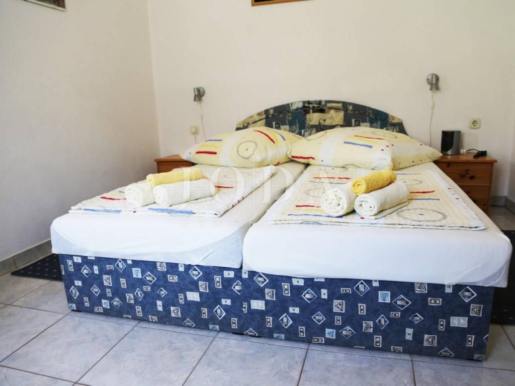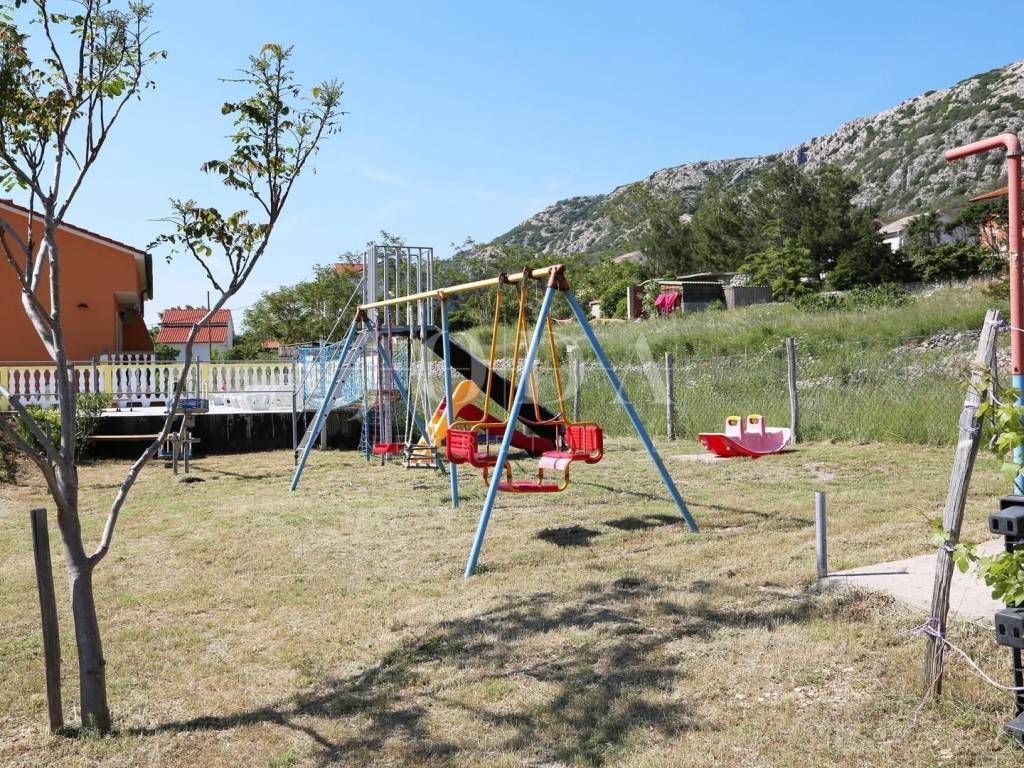 Detached house in a quiet location in Baska. The house consists of three floors and has a total of 8 one-bedroom apartments. The apartments are fully equipped for holiday rental. The house is located on a plot of 1000 m2, where there are 9 parking spaces, barbecue, two garages (one in function of a laundry room), a sunbathing area and a playground for children. This property is surrounded by green fields and natural beauty of Baska. Property for lovers of peace and quiet. From the sea 2500 meters.