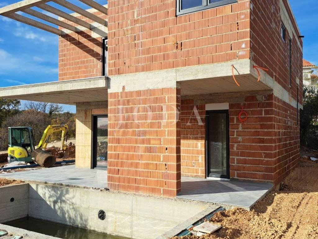 A modern detached villa with a pool and sea view under construction near the town of Krk is for sale!