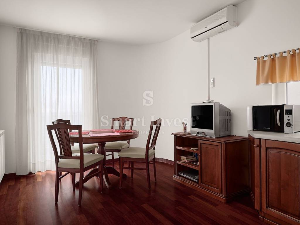 This comfortable apartment consists of two bedrooms, bathroom, toilet, corridor, kitchen with dining room, living room, and two balconies. In addition, the apartment has a garage and a storage room, which provides you with additional practicality.