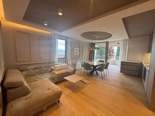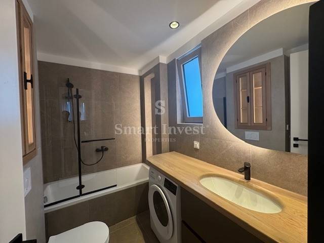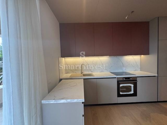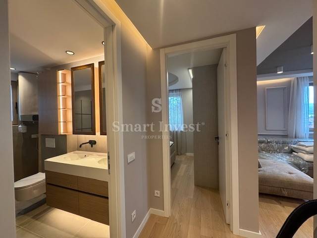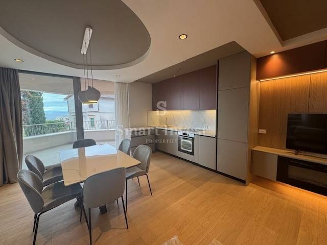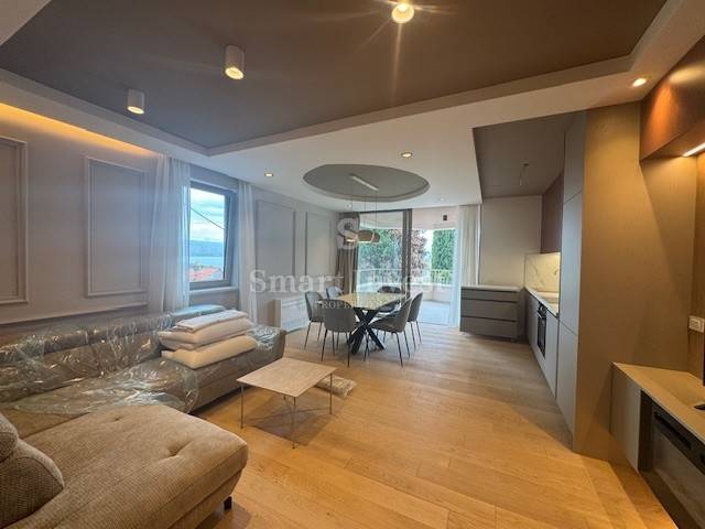 The apartment consists of a spacious living room with access to a balcony with a beautiful sea view, a fully equipped kitchen with a dining area, two bedrooms, a modern bathroom and an additional toilet. The interior is designed with special attention to detail, using high-quality materials and luxurious custom-made furniture.