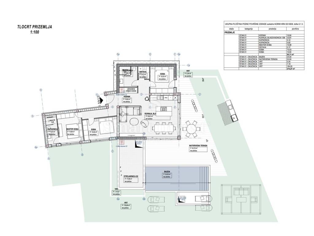 What makes this property truly special is the outdoor space perfectly designed for relaxation and socializing: a spacious 197.23 m2 garden with an outdoor fireplace bathed in sunlight all day long, a luxurious 53.04 m2 covered terrace and a heated pool with counter-current swimming (24 m2) - the perfect place to relax and enjoy the breathtaking panoramic view of the Kvarner Bay.