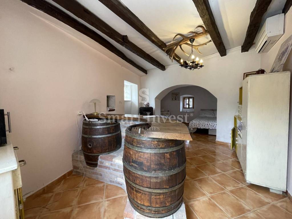 VELI BRGUD, a charming stone house with an area of 86 m2, consists of a living room with a kitchen and dining room, two bedrooms, a bathroom and a hallway.