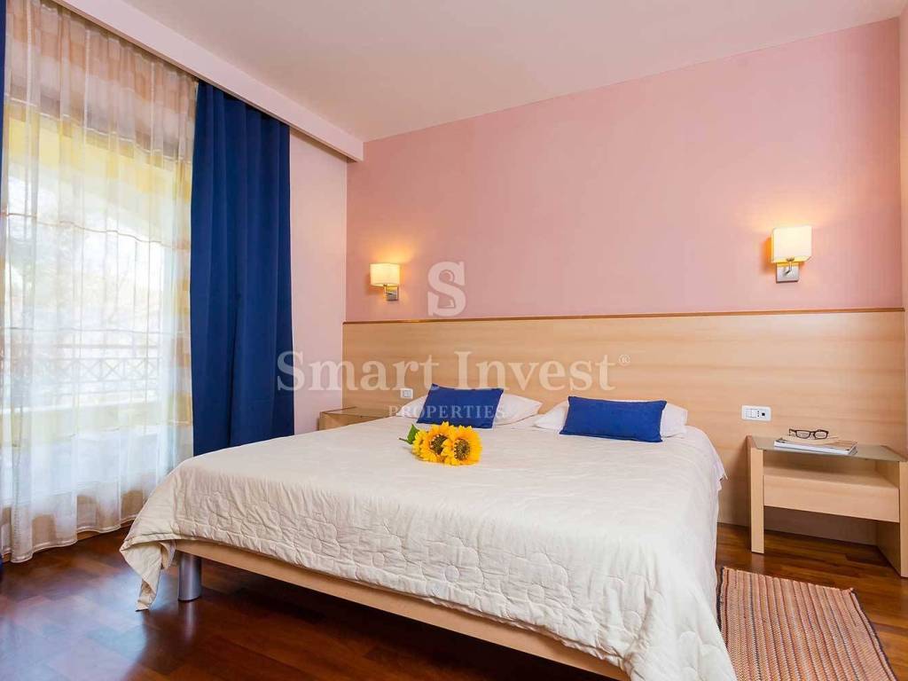 Simpatičan mini hotel (528m2) koji radi po principu "bed and breakfast" nalazi se okružen zelenilom, a svega na par minuta od mora u Novigradu na sjeveru zapadne obale Istre. Ovaj uhodani "B and B" ima 8 soba (7 dvokrevetnih, površine 25m2) i jedna trokrevetna (40m2), a jedna soba je pet friendly. Svaka soba ima svoju terasu okruženu zelenilom, a trokrevetna soba ima pogled prema bazenu koji se smjestio u vrtu. Postoji mogućnost nadogradnje dodatnih soba na parceli ukupne veličine 1317m2.