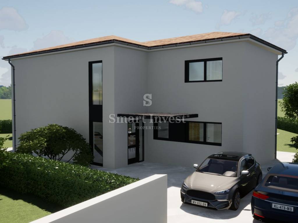 This modern villa with an area of 169.30 m2 is being built on a land plot of 678 m2, has 4 bedrooms, 2 bathrooms + 1 toilet.