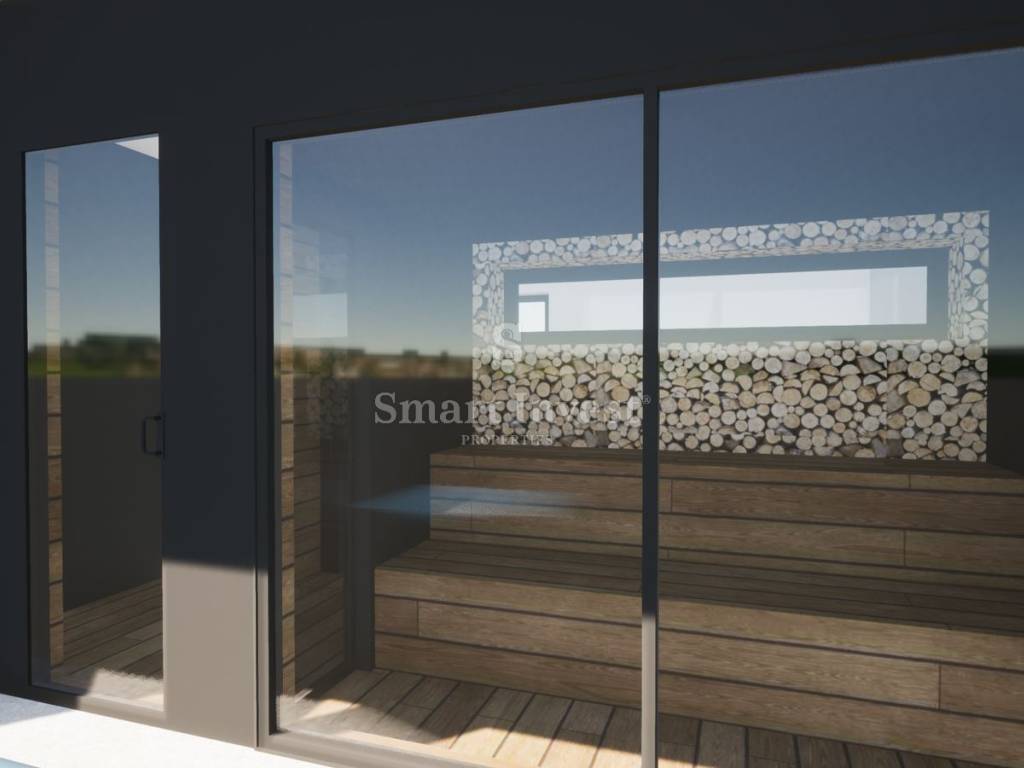 The villa is spread over two floors. On the ground floor, there will be a spacious open space living room with kitchen and dining area, toilet and storage room. Large glass walls will been installed throughout the entire living room and dining room, which allow a lot of light. From the living room and the dining room you can go directly to the covered terrace where is a swimming pool that offers a view of greenery, peace and quiet.