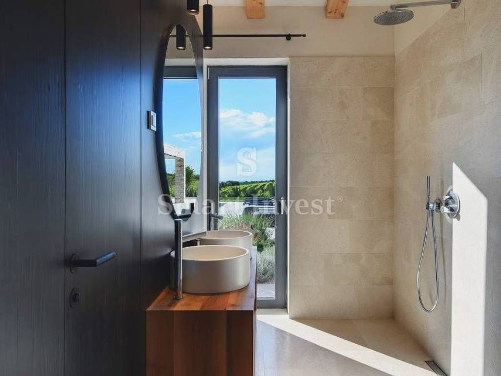 This idyllic residential complex with nine modern rustic villas with a swimming pool is located on an amazing location surrounded by olive groves and vineyards, just 7 km away from the sea coast and 10 minutes walk to the center of Brtonigla, so called the "vine village", small quiet town famous for its rural tourism, konobas and wines.