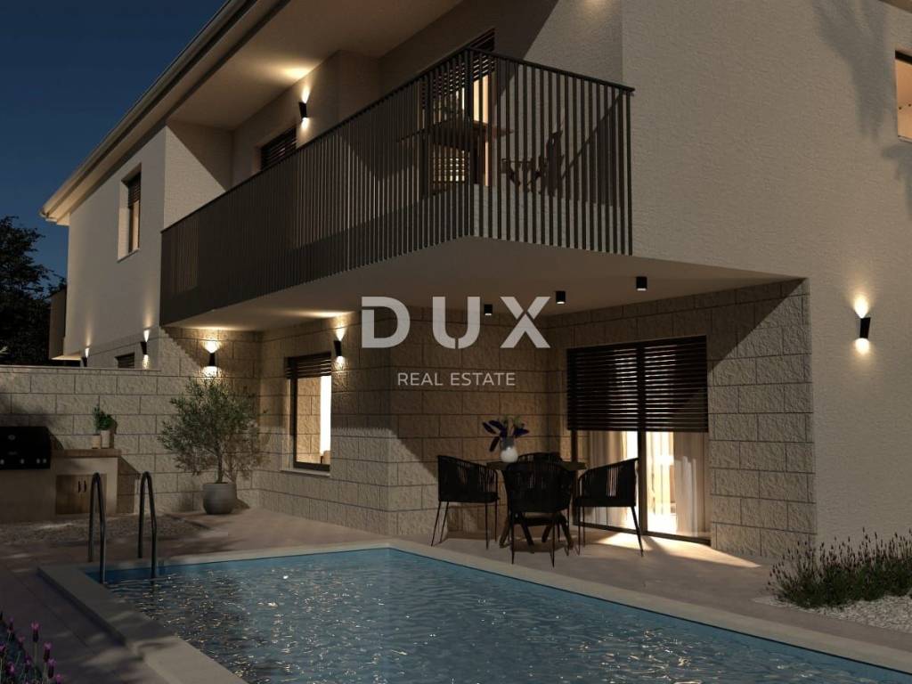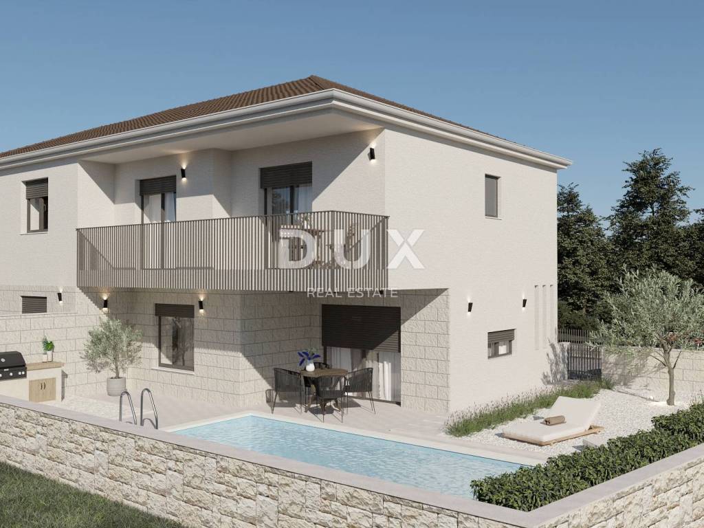 A modern semi-detached house for sale, built in 2025, located in a quiet area near Malinska, just 1.5 km from the sea as the crow flies. Ideal for a family or an investment, this property offers a high standard of construction and equipment and a Mediterranean landscaped garden with a swimming pool.
