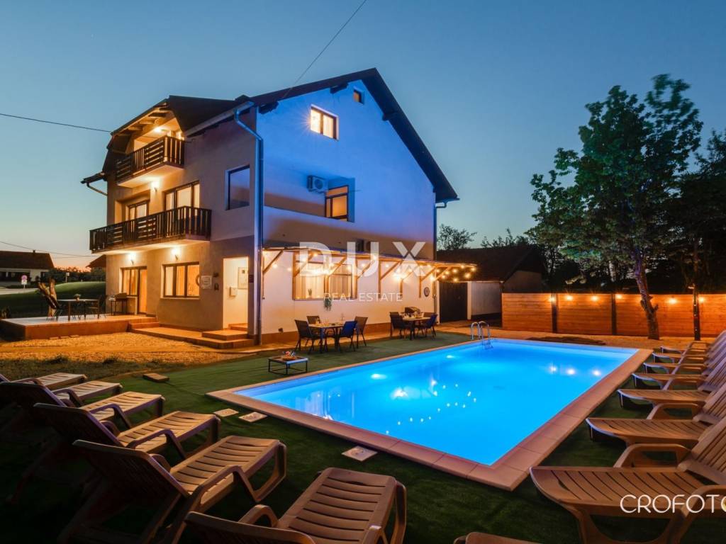 A spacious house is for sale in the village of Drežnik Grad near the Plitvice Lakes. The building with a total area of 315 m2 and an auxiliary building of 70 m2 were built on a plot of 1278 m2. The completely renovated house consists of a basement, ground floor, first floor and attic. On each floor there is a two-room apartment consisting of a living room, kitchen, dining room, two bedrooms, balcony and bathroom. The auxiliary building with a covered terrace and barbecue is also used as a residential building, and can serve as a room for additional facilities such as a sauna, jacuzzi, games room. In the spacious yard there is also a 32 m2 swimming pool and private parking. The boiler room is 20 m2, and the basement is an additional 20 m2. Central heating is carried out through all three floors. The house was renovated in 2024. The property, with an established tourist business, has a capacity of 18 people and represents an excellent investment in tourism. Located in an attractive location, only 13 km from the Plitvice Lakes National Park, Drežnik Grad is a historic settlement with the remains of a medieval fortress that testifies to the rich past of this region. Plitvice Lakes are one of the most famous natural treasures of Croatia, famous for their crystal clear lakes and waterfalls surrounded by lush forests. These areas attract visitors because of the unique beauty of nature and cultural heritage, ideal for exploration and enjoyment.