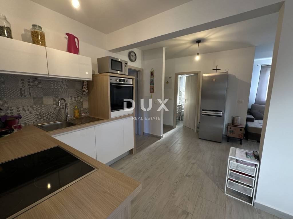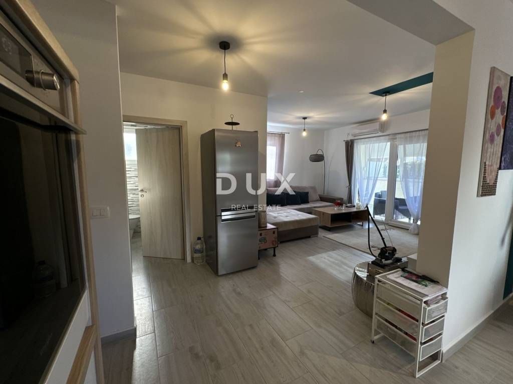 We offer a beautiful, fully furnished two-bedroom apartment located on the ground floor of a smaller, recently built building in Petrčane, 1000 meters from the sea. The apartment has a total usable area of 68.24 m, and consists of a spacious living room with kitchen and dining room, two bedrooms and one bathroom.