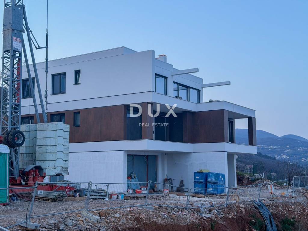 In the exclusive sale of Dux, we highlight a unique opportunity for a new building in Lovran, near Opatija. It is a building located in a quiet street above Lovran beach with panoramic sea views. The house is located within a fenced complex with a boutique lifestyle, - luxury, panoramic sea views, swimming pool, sun, quality construction. There are two duplex apartments in one house. Each unit has its own private entrance and guarantees a sophisticated way of living. We highlight high ceilings, large glass walls from which a truly magnificent panoramic sea view is offered, underfloor heating with a heat pump, first-class ceramics, parquet floors and sanitary ware, aluminum joinery, heated swimming pool, garden with rich horticulture, irrigation. The microlocation is fantastic, the drive to the center of Lovran or the first beach takes 5 minutes on a local road while the buildings are located below the aforementioned road in a street without traffic, which guarantees silence. The drive to the center of Opatija is 12 minutes by car. This is an ideal opportunity for investment or living in the Opatija Riviera, suitable for personal residence or luxury tourist rental. To arrange a visit to the property, call the agent with confidence - consultation in German is possible.