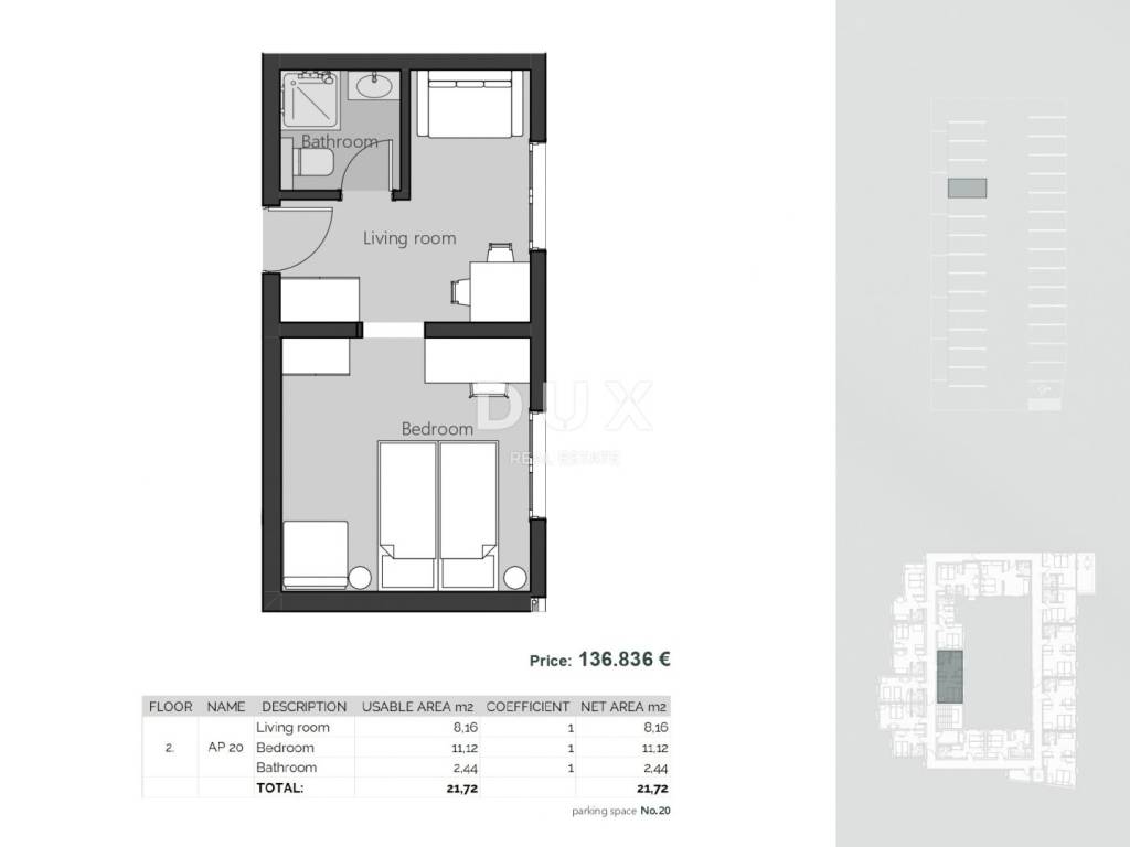We present you a unique opportunity in Crikvenica - a city with a long tourist tradition and constant growth in demand. We offer a new luxury complex with 30 modernly equipped apartments and hotel rooms ranging in size from 14 to 28 m. This project combines contemporary design, smart technologies and an attractive location, just a few minutes' walk from the sea and the center. Investors are offered a guaranteed annual yield of 5%, with a realistic growth potential of 79% thanks to the extended season and professional management. Usage options: Personal use of the apartment or hotel unit Inclusion in the rental system with Full Property Management service (marketing, booking, reception and guest care, maintenance, financial reporting) - a worry-free investment with passive income. Complex facilities: Wellness and spa area with indoor pool, massages and treatments Restaurant and cafe bar on the ground floor 24/7 reception and guest services Parking space option (20,000) Interiors: Designer doors, Diere security entrance doors, bathrooms with moisture and impact-resistant Kerok furniture, large-format ceramics, matte sanitary ware with gold details, indirect lighting and a smart app-based management system. Location: Crikvenica offers ideal transport connections - close to Rijeka, Zagreb, Istria, the island of Krk with the airport and the A1 motorway. The city is known for its beaches, gastronomy and year-round tourism, which makes it one of the most sought-after destinations in Kvarner. Crikvenica Residence is not just real estate, but an investment in security, stable income and lifestyle. Do not miss the opportunity to become the owner of a part of this prestigious project!
