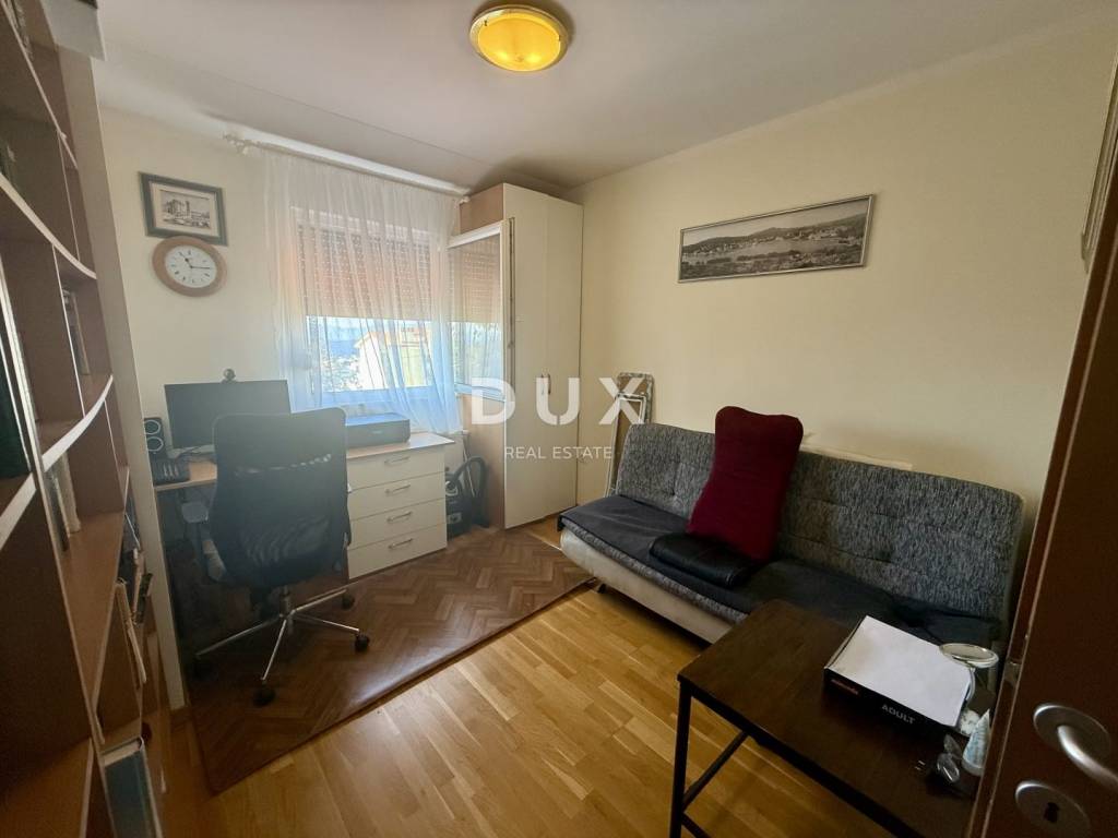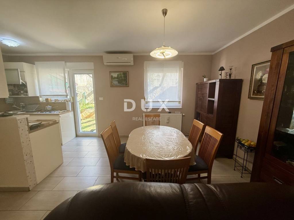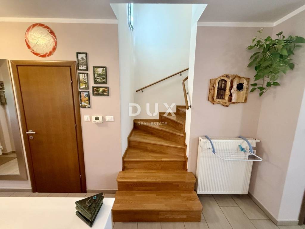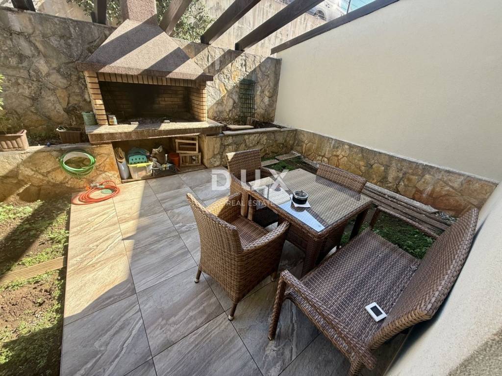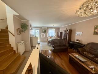 We are selling excellent real estate in Kostrena in a great location! A two-story apartment built in 2013. The lower floor consists of a living room, kitchen, separate toilet, storage room and wardrobe. On the north side there is an exit to a part of the garden where there is a barbecue. Beams for a canopy have also been installed. On the south side there is an exit to a larger garden consisting of a covered terrace and a green area. The upper floor consists of three bedrooms, one of which has a balcony, and a bathroom with a toilet (which also has underfloor heating). Also from the upper floor there is an entrance to the attic which serves as a storage room. The apartment also comes with two parking spaces. The apartment is equipped with gas central heating and is fully air-conditioned (3 air conditioners). Most of the furniture is custom-made, the kitchen is 'Dan kuchen' and all furniture, except for personal belongings, remains in the price. The sea is a ten-minute walk away, which makes this property an ideal investment and for tourist rental. It is also located in a dead end street in a peaceful and quiet location. Great opportunity with a sea view!