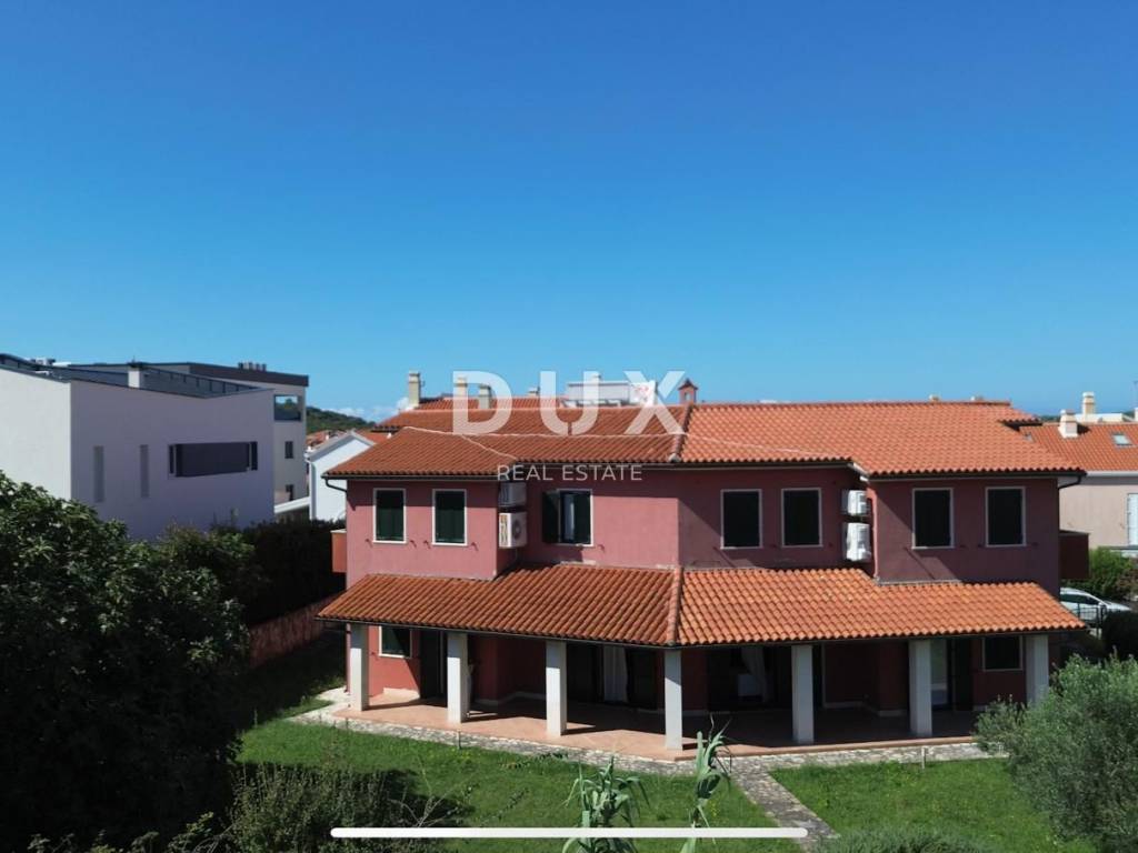 In the exclusive offer of DUX real estate we offer you a large family villa with a special concept. LOCATION: A quiet, well-maintained street surrounded by family houses and new properties. It is located 300 meters from the promenade along the sea and the marina for boats, so we highlight this information for all those from the nautical world. Also, the first beach is a 10-minute walk from the villa. In addition to the first nearest beach, you are surrounded by numerous beautiful beaches and nature as well as the vicinity of the Kamenjak Nature Park. Shops, gas stations and restaurants are located in a district of less than 1 km. The villa conceptually consists of three two-story apartments - each with its own entrance but also interconnected. Each apartment has access to a large spacious terrace from the back of the villa with a view of the greenery and this is the space where all three apartments connect - which is ideal for large families. Everyone has their own private space and separate entrance, but as already mentioned, the apartments are interconnected so that you can use the spaces as you wish. The covered terrace is very spacious and offers a view of the rest of the garden, which has enough space to build a swimming pool, and the total area of the land is 884 m2. The villa has two garages, one at each end of the house, which ensures maximum practicality and access from different sides. In addition to the main pedestrian entrance, the villa also has two additional entrances, each gate leading to a separate garage. The living interior area has an area of 280 m2 and each apartment has a living room with a kitchen and dining room that have access to a large shared terrace on the ground floor. Additionally, there is a bathroom on the ground floor. On the first floor of each apartment there are two bedrooms and a bathroom and a terrace. The central terrace offers a view of the sea. Heating and cooling is provided by air conditioning, and central heating is additionally emphasized. For all other information and a full experience of the villa of special architecture in a beautiful location, feel free to contact us!
