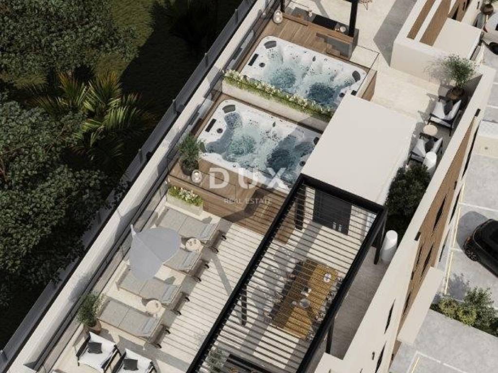 Four luxury apartments are for sale in Zaton, just 55 meters from the beach. Two apartments are located on the ground floor, while two are duplexes on the second floor and have a roof terrace with a beautiful view of the sea and the beach. The apartments are sold fully furnished with top-quality luxury furniture. Each apartment has three bedrooms, each with its own bathroom, an additional bathroom and one guest toilet. In addition, each apartment has three parking spaces, one of which is closed and one equipped with an electric vehicle charger. The building has an elevator from the renowned manufacturer Schindler, and the entrance is secured by security doors, a video intercom and an external surveillance camera. The smart management system in the apartments is based on the KNX protocol with top-quality ABB and Siemens components. The internet is fully integrated, with the possibility of connecting to Starlink satellite internet. The entrance doors are burglar-proof and fire-resistant, with a multi-point locking system. The building structure is made of reinforced concrete, with top-notch thermal and sound insulation made of rock wool and EPS. The floors in the living areas and hallways are covered with large porcelain tiles, while the bedrooms are decorated with three-layer oak parquet. The walls and ceilings are finished with wood, stone and decorative panels, and each apartment has a designer fireplace with a variable lighting effect. The kitchens are custom-made, with integrated lighting and granite worktops, an island with a "waterfall" effect and top-of-the-line Miele appliances: induction hob, oven, dishwasher, hood and wine cooler. The bathrooms are luxuriously equipped with Geberit sanitary systems, Hansgrohe fittings, walk-in showers with tempered glass and stone or quartz surfaces. The apartments have underfloor heating in all rooms, an LG heat pump and boiler system, air conditioning and smart lighting control, blinds and a Sonos sound system in all rooms. The exterior of the building is covered with acrylic plaster with rock wool, and the joinery is triple-glazed with automatic roller shutters. The outdoor terraces are decorated with top-quality waterproofing systems, covered with weather-resistant panels. Each apartment has a private summer kitchen, and the ground floor apartments have their own swimming pools with advanced filtration and electrolysis systems. In addition, the roof terraces have bioclimatic pergolas with the possibility of electrical control. Zaton is a quiet tourist resort known for its beautiful beaches, crystal clear sea and the proximity of the famous tourist complex Zaton Holiday Resort, which is only a minute's drive away. The city of Zadar, with its rich cultural heritage, restaurants, shops and international airport, is only ten minutes away. This is a unique opportunity to invest or live in a luxurious area by the sea, with top-quality amenities and complete comfort. For more information and a tour, please feel free to contact us.