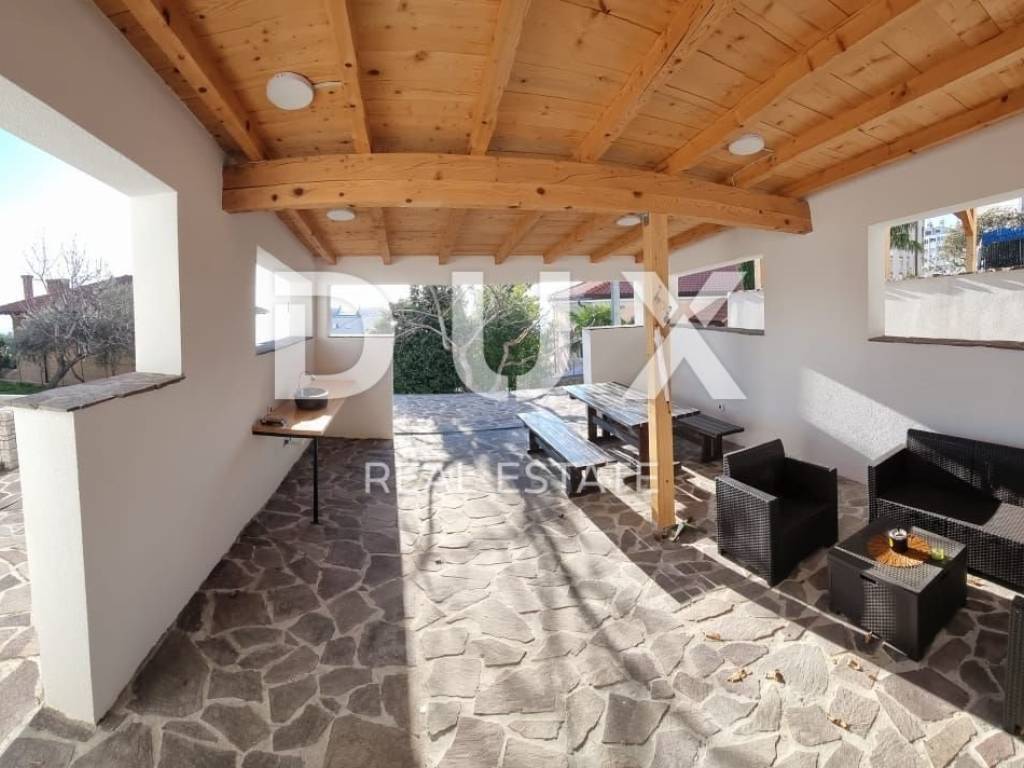 On an area of 1,263 m2 there are 2 houses, 2 outbuildings with an apartment in each building + each with its own terrace, 2 canopies (gazebos) under which there are tables and outdoor armchairs, a large courtyard paved with porphyry stone, and a tavern next to the lawn. - 5 residential units. Completely renovated in 2021 on all 4 buildings (new roof, new gutters, new facade - 10 cm polystyrene, new water pipes, new electrical installation, new canopies made, courtyard paved with porphyry stone...). - The first house consists of 2 apartments with separate entrances + gazebo (97 m2 each floor + gazebo 29 m2). On the ground floor there are 2 bedrooms, a living room, a kitchen and a bathroom with a toilet. On the first floor there are 2 bedrooms, a living room, a kitchen, a bathroom with a toilet and a large balcony. - The second house is 1 apartment on two floors + a canopy (54 m2 each floor + a canopy of 25 m2). On the ground floor there is a large living room, a kitchen, a bathroom with a toilet and a room that serves as a storage room. On the first floor there are 2 bedrooms, a toilet and a gallery. - In the first auxiliary building there is 1 apartment (34 m2). It consists of 1 bedroom, a living room, a kitchen, a bathroom with a toilet and a room that serves as a storage room + an adjoining terrace. - In the second auxiliary building there is 1 apartment (25 m2). It consists of 1 bedroom with a living room, a kitchen and a bathroom with a toilet + an adjoining terrace. - The third building is located next to the lawn and serves as a tavern with a barbecue. The property has a sea view from the ground floor, and from the first floor there is a view of the entire Kvarner Bay. Excellent infrastructure (bus, restaurant, kindergarten, hospital, pharmacy, gas station...). This property is approximately 290 meters as the crow flies from the sea, or 6 minutes by car to Sablićevo beach or approximately 12 minutes on foot to Sablićevo beach. A good opportunity for investors who are engaged in renting apartments / houses. The property is currently fully rented and contributes 4,450 euros each month. The house is located in a quiet and peaceful environment. UNIQUE PROPERTY IN AN EXCELLENT AND UNIQUE LOCATION WITH GREAT POTENTIAL!!!