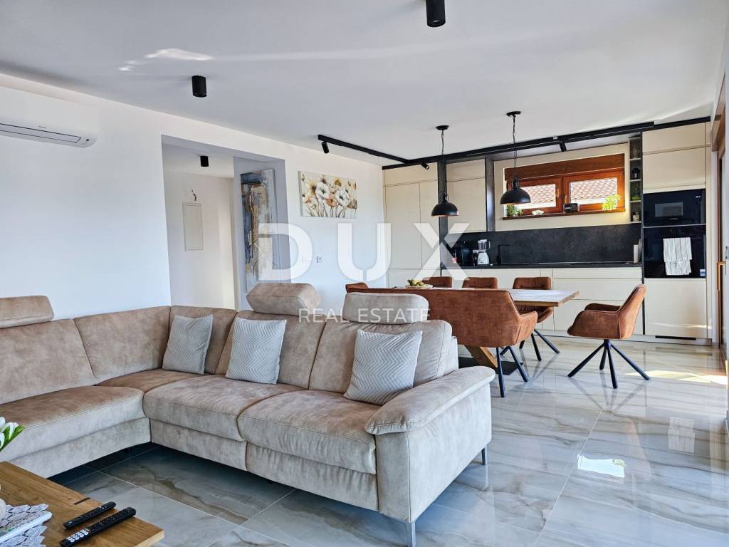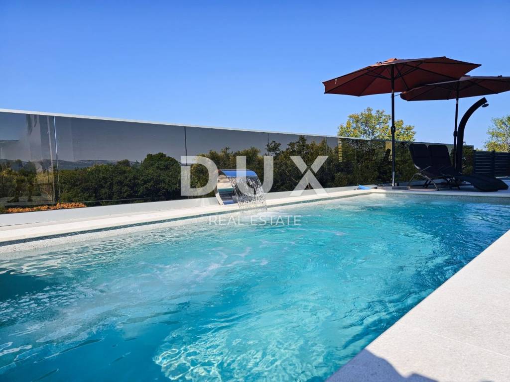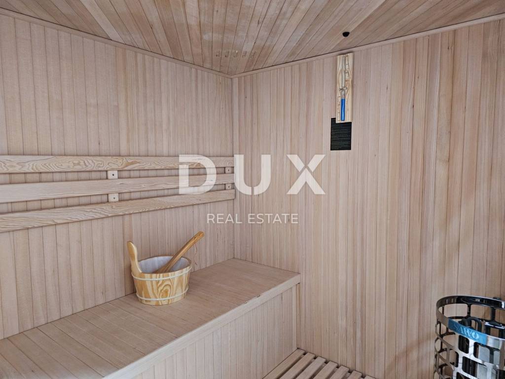 Welcome to a villa that is filled with warmth and is waiting for you! We enter the basement area, very functional and full of possibilities. The first thing that will delight you is the garage, large enough to accommodate two cars, one larger and one smaller. Immediately below is an empty space, which you can turn into a wine tasting room, a "gaming room" or a private gym, whichever best suits your lifestyle. There is also a laundry room and a technical room with a heat pump and storage, neatly and thoughtfully arranged. We go up to the ground floor, which is truly the heart of this house. The entrance area opens onto the spacious living area. The kitchen and dining room are designed for socializing, from morning coffee in silence to dinner with friends. On the ground floor there is a guest room with a private bathroom, so your guests always have their own corner. And for a complete atmosphere, there is a sauna and an additional bathroom. From the living room and kitchen we go out onto a large terrace and reach the jewel of this villa - a swimming pool, and not just any kind. The pool is heated, with salt water, a massage system and counter-current swimming. An underground engine room with equipment and a heat pump ensures that everything functions flawlessly. What is worth mentioning is certainly the pool lining, it is not ceramics, it is not foil, but a waterproof, light-colored cooler, extremely long-lasting and gives the pool a special color. The yard is decorated with Mediterranean plants, a sunbathing area, an outdoor shower and a barbecue area. Let's go back inside the 280 m2 living space. An internal staircase takes you to the first floor, where luxury in all its glory awaits you. Three bedrooms, each with its own bathroom and access to a terrace. The terraces have a captivating view of the sea. Two have built-in wardrobes, while the master bedroom has a private dressing room. In the morning, when you open the door to the room, you will feel that the entire Kvarner belongs only to you. Details that take this villa to the next level: - Underfloor heating throughout the house via a heat pump and air conditioning in every room - A combination of ALU and PVC joinery in imitation of wood - high-quality, durable and aesthetically perfect - Ceramics and sanitary ware from renowned manufacturers, installed with top precision - Preparation for an alarm system, smart control and an intercom with a large screen at the entrance And most importantly - it is being sold fully furnished and equipped. It is ready for you, immediately, without waiting. This is a place that can be proudly called home.