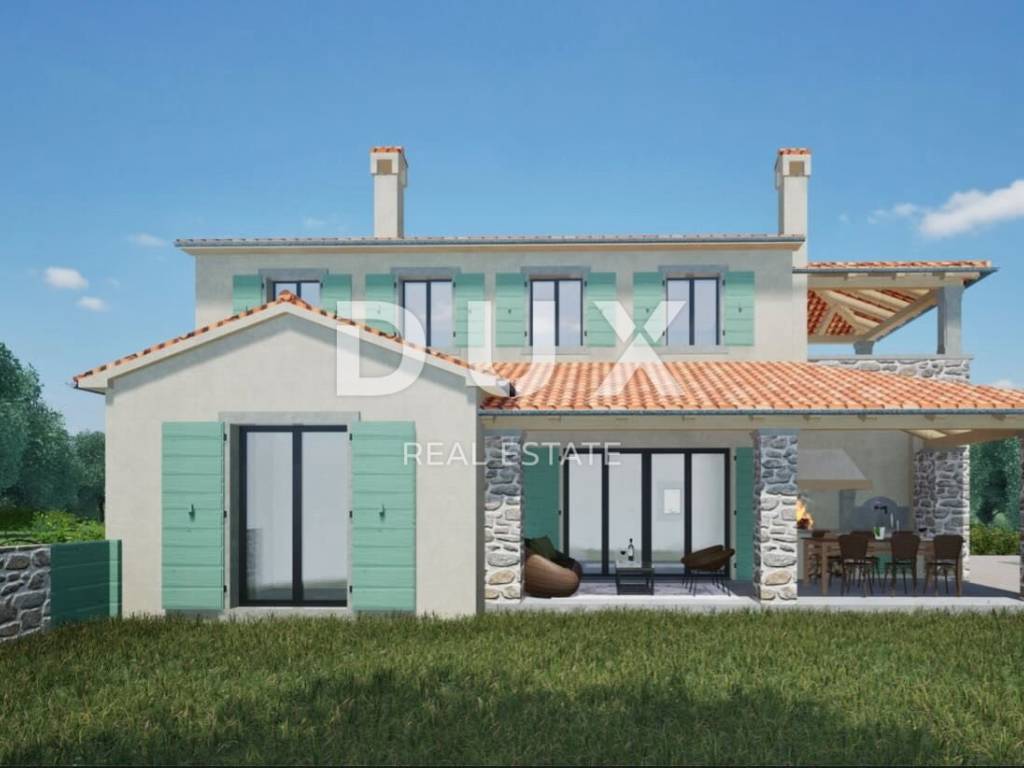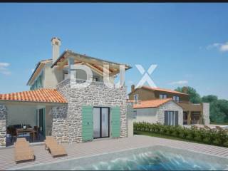 In the picturesque Istrian town of Brtonigla, known for its top-quality wines, olive oil and authentic ambience, a house with a swimming pool under construction is for sale that perfectly combines traditional Istrian charm and modern comfort. Located on a spacious plot of 650 m, surrounded by olive groves and nature, this house offers complete privacy and peace. With a total living area of 150 m spread over two floors, the villa offers a thoughtful and functional layout: Ground floor - a spacious living room connected to the kitchen and dining room, which opens onto a covered terrace ideal for relaxing by the pool. On this floor there is also one bedroom with its own bathroom and an additional guest toilet. First floor - two comfortable bedrooms, each with its own bathroom, and a terrace with a beautiful view of the olive groves and the surrounding nature. The architectural solution combines stone walls, a tiled roof and wooden shutters in pastel tones, while large glass walls ensure plenty of natural light and a connection between the interior and the exterior. Key features: House area: 150 m Land area: 650 m 3 bedrooms with en-suite bathrooms 1 additional toilet Private pool Covered terrace and outdoor space for socializing Terrace on the first floor with panoramic views A combination of modern construction and Istrian charm Planned completion: early 2027 - possibility of personalizing the interior according to the buyer's wishes. The house is sold unfurnished. Take the opportunity to secure your corner of Istria in time and adapt it to your own wishes. Contact us today and take a step towards your new home in the heart of Brtonigla!