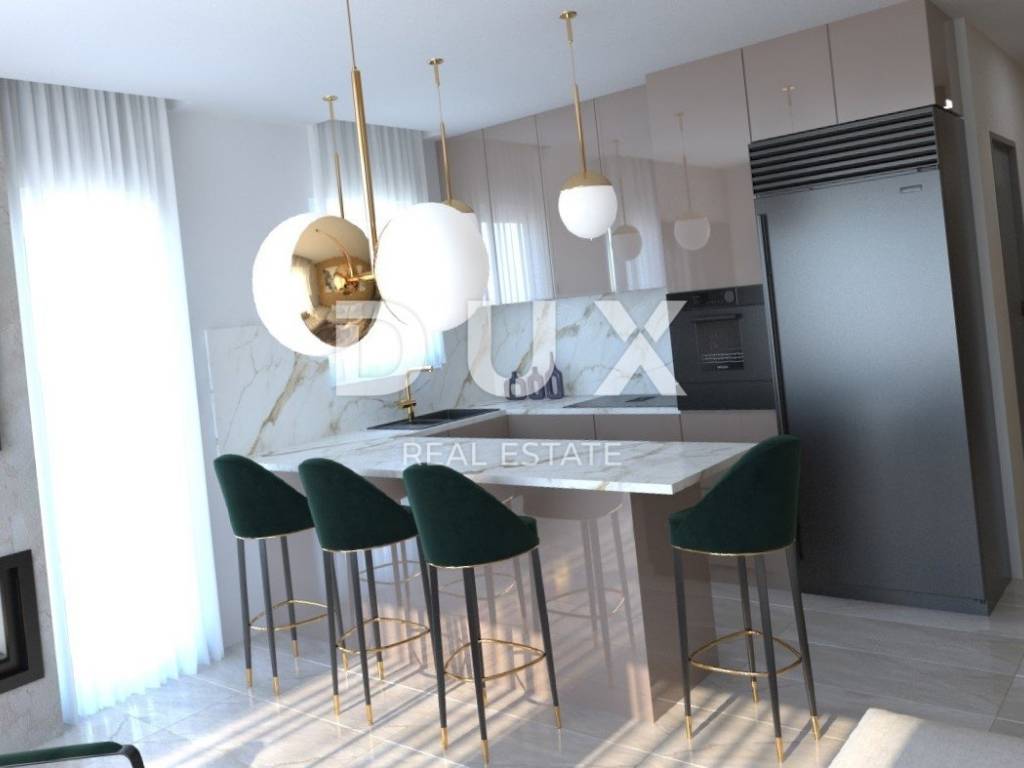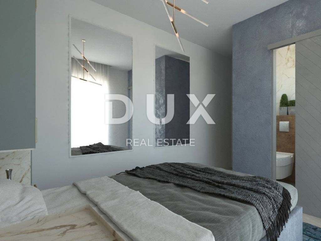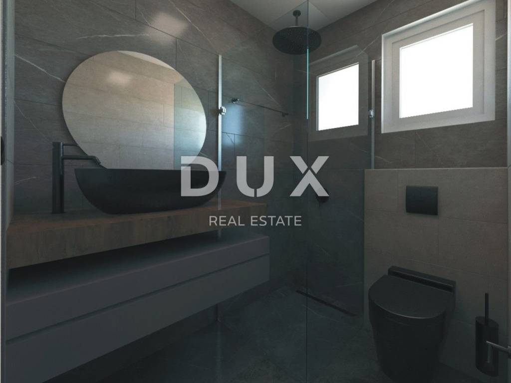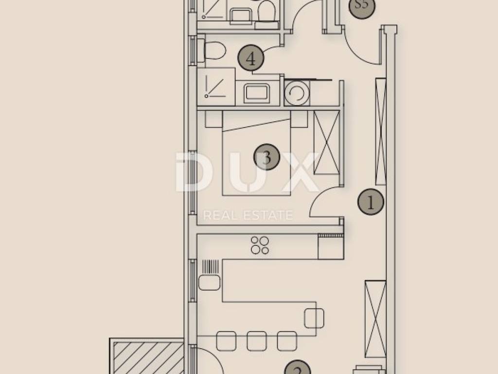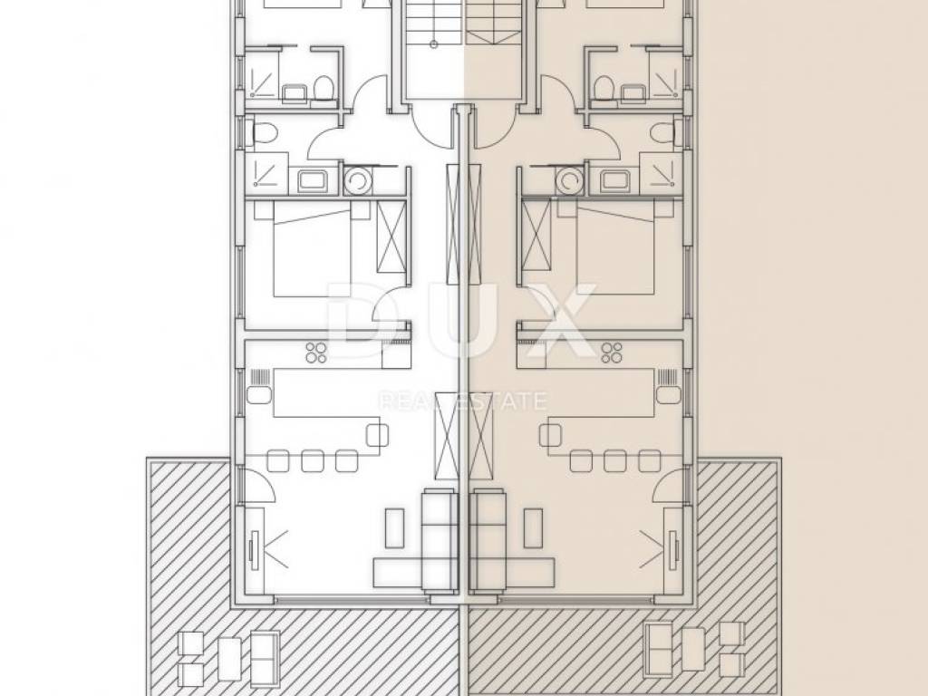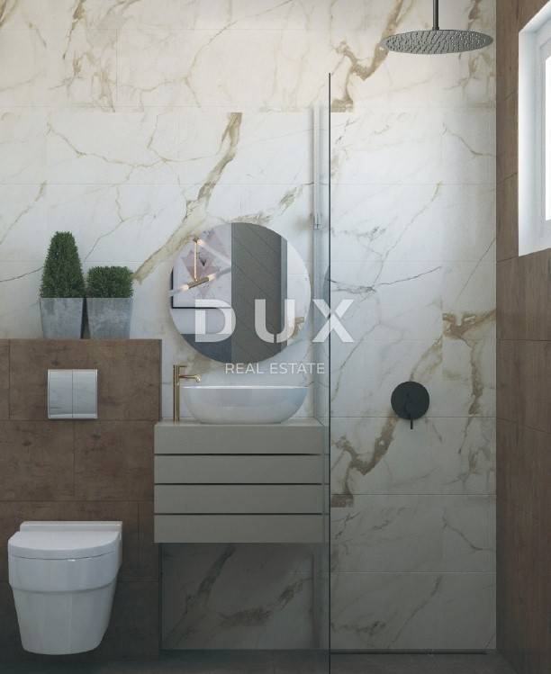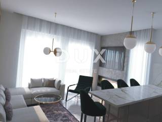In a quiet dead-end street in Trogir, an apartment on the top of a building with a private roof terrace and an attached garage is for sale. The apartment is located 120 meters as the crow flies from the sea, with walking distance to the beach, the center of Trogir, the marina, the ferry port and other amenities. The apartment (designation: Apartment 6) has an internal area of approximately 58 m and consists of a living room, two bedrooms and two fully equipped bathrooms. In addition to the living space, the apartment has a covered balcony of 20 m and a roof terrace of 78 m with hot and cold water connections and an electrical connection for a jacuzzi or solar panels. The price also includes a 15 m garage with a 220 V connection designed for charging an electric vehicle. The apartment is equipped with underfloor electric heating, ceramic tiles in all rooms, separate air conditioning in each room, electric shutters, mosquito nets and PVC windows with triple-layer IZO LOW-e glass. The apartment has a separate electricity and water meter, and the building is connected to the city sewerage system and has a usage permit. It is located next to the green zone area where further construction is not allowed, which provides a stable view of the sea and the bay. The apartment is sold fully furnished, including furniture in all rooms and household appliances: TV, dishwasher, washing machine, water heater, oven, stove, microwave oven, refrigerator and freezer. The apartment is ready to move in immediately.