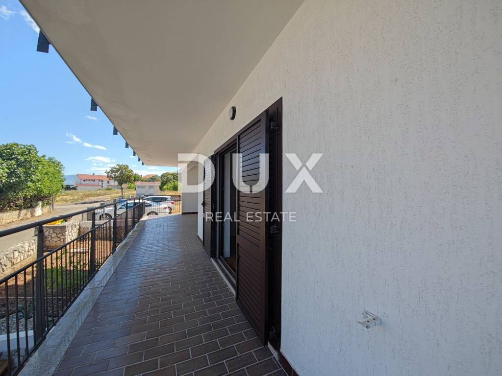 KRK ISLAND, NJIVICE - One-room apartment with a large living room. It consists of a bedroom, hallway, bathroom, large living room, kitchen and dining room. There is a possibility of partitioning the living room and getting another bedroom. It has an exit to a large terrace. It has one parking space. The building is located in a quiet part of the village of Njivice, about 500 meters from the sea.