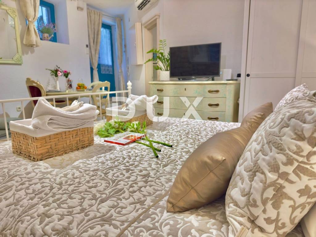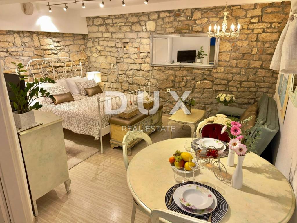 DUX Real Estate presents you with a beautiful studio in the very heart of the city of Rovinj. The studio of 29 m consists of: -living-sleeping area with dining table -fully equipped kitchen -bathroom The interior is decorated in a rustic-vintage style, which gives the space warmth, character and authentic charm - perfectly integrated into the spirit of the old town of Rovinj. ADDITIONAL BENEFITS: In addition to being a private oasis in Rovinj, the apartment represents an excellent investment opportunity. It is already established as an apartment for daily rent with excellent reviews on platforms such as Airbnb and Booking. The buyer can, by agreement, take over the existing profiles and immediately continue with a successful business without additional investments. DOCUMENTATION: The title deed and the use permit have been obtained, and the possibility of purchasing with credit is possible. The categorization of the apartment has also been obtained, which allows it to be rented to tourists. For more information and to arrange a viewing, please feel free to contact us!