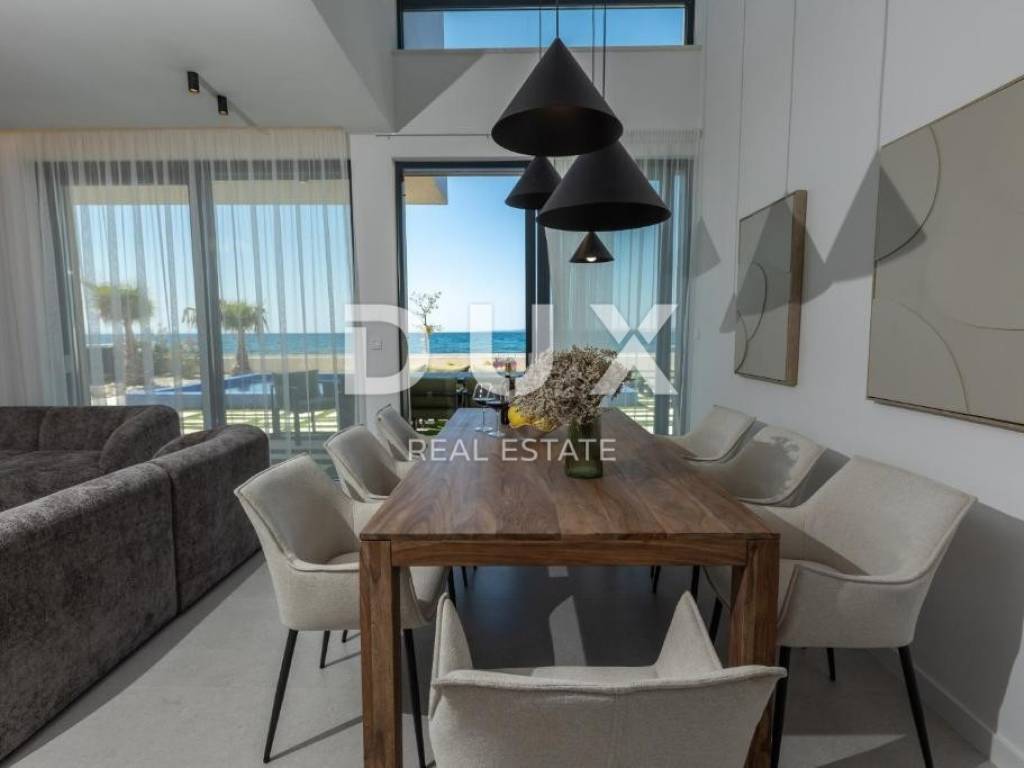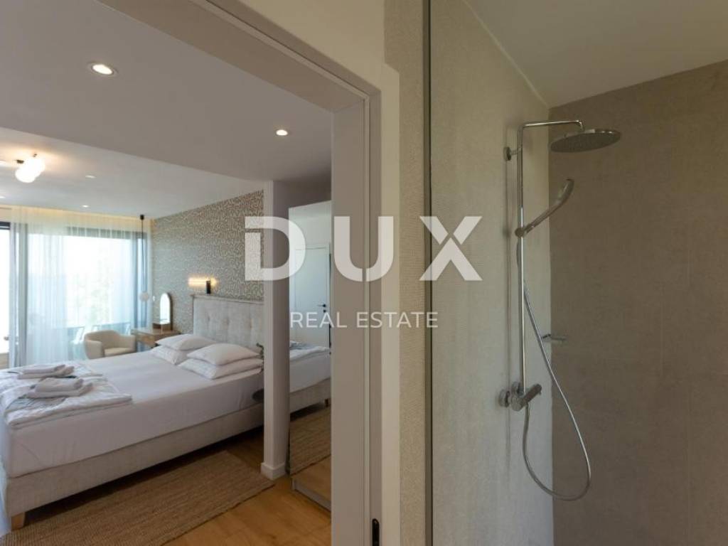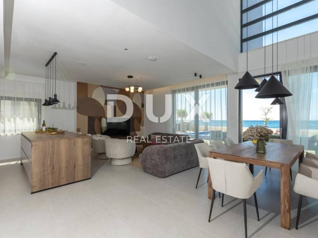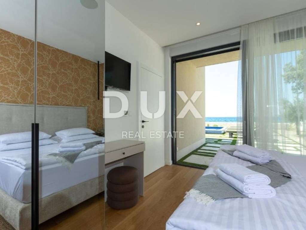 We are selling a beautiful villa under construction right on the beach. It consists of two floors and an organized garden. On the ground floor there are living rooms, rooms for household maintenance, a garage for two cars, a sunbathing area, a swimming pool and other facilities for daily activities. Private rooms are located on the first floor; 4 bedrooms with private bathrooms with access to a large balcony with a wonderful view of the sea. The house has a smart management system, which makes it easier to maintain the property and enjoy it more comfortably. Sisem Loxone Smart Home can be controlled via a switch, smartphone, tablet (remote access) or computer. The villa is equipped with a heat pump for heating and cooling with high energy efficiency and contributes to the great comfort of living. The internal heating and cooling units of the facility are placed in the suspended ceiling, which improves the visual identity of the facility's interior. Domestic hot water is also heated by a heat pump. This system contributes to the high energy efficiency of the villa itself, thus protecting the environment. In the garden there is an overflow heated pool. The pool is heated by a heat pump that is independent of the heat pump for heating and cooling the building.
