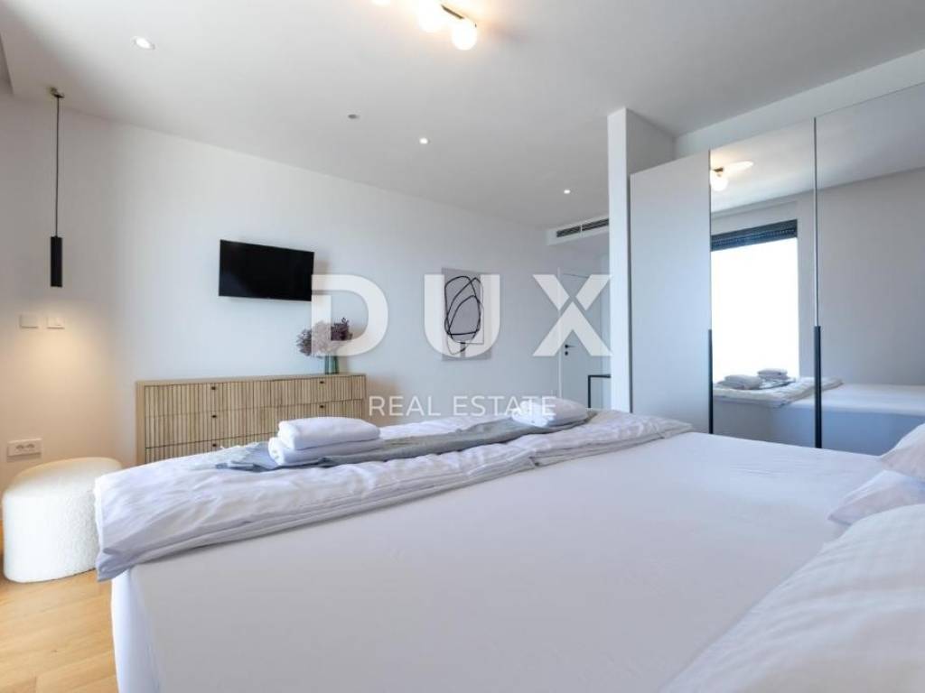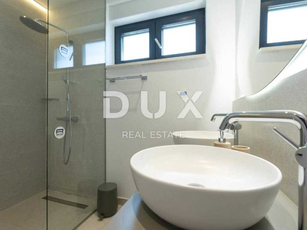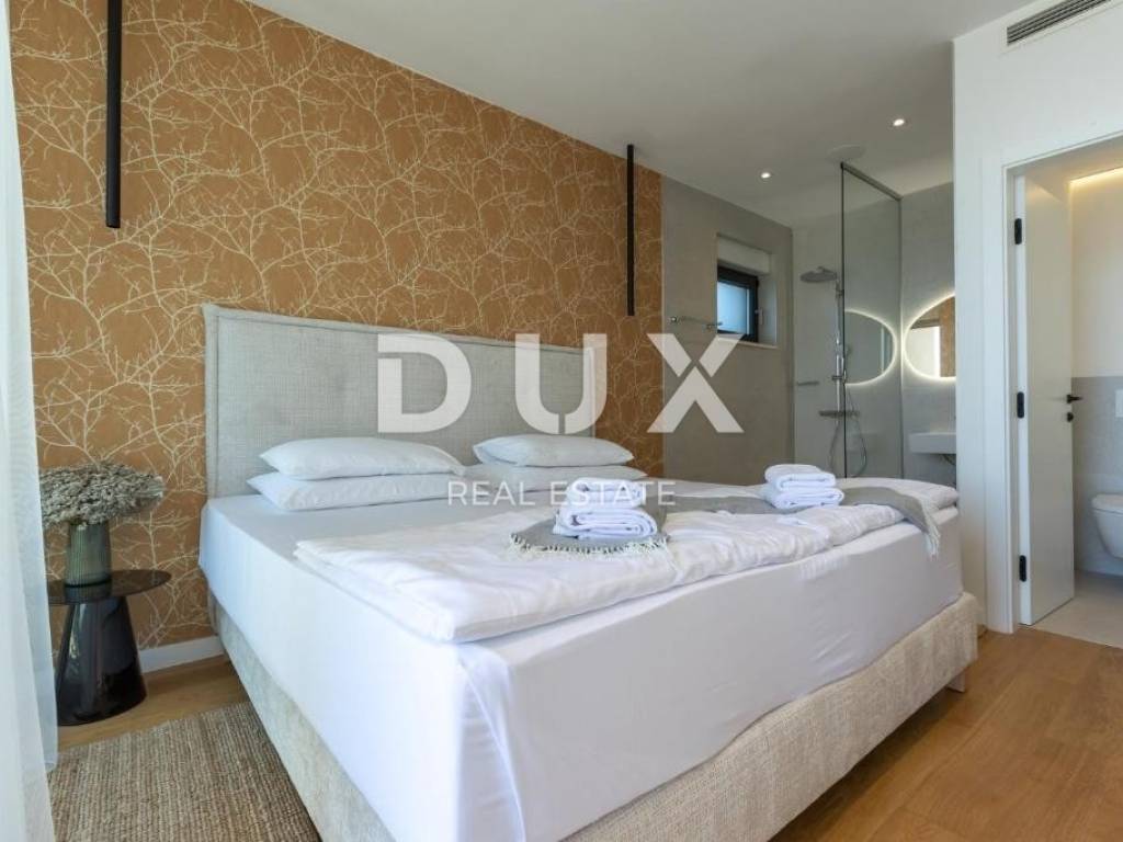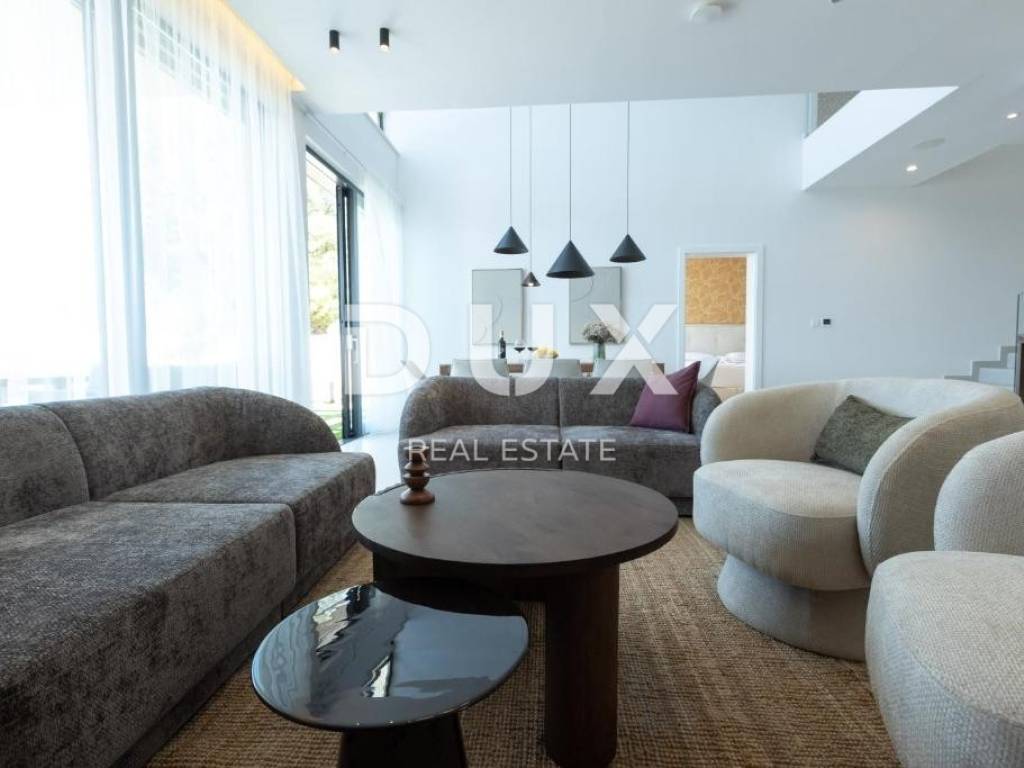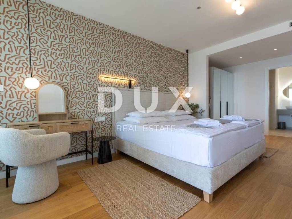 We are selling a beautiful villa under construction right on the beach. It consists of two floors and an organized garden. On the ground floor there are living rooms, rooms for household maintenance, a garage for two cars, a sunbathing area, a swimming pool and other facilities for daily activities. Private rooms are located on the first floor; 4 bedrooms with private bathrooms with access to a large balcony with a wonderful view of the sea. The house has a smart management system, which makes it easier to maintain the property and enjoy it more comfortably. Sisem Loxone Smart Home can be controlled via a switch, smartphone, tablet (remote access) or computer. The villa is equipped with a heat pump for heating and cooling with high energy efficiency and contributes to the great comfort of living. The internal heating and cooling units of the facility are placed in the suspended ceiling, which improves the visual identity of the facility's interior. Domestic hot water is also heated by a heat pump. This system contributes to the high energy efficiency of the villa itself, thus protecting the environment. In the garden there is an overflow heated pool. The pool is heated by a heat pump that is independent of the heat pump for heating and cooling the building.