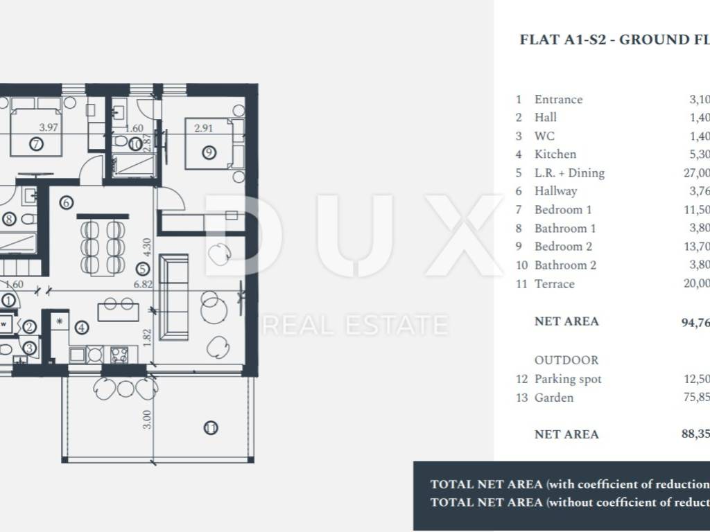 Entering Istria from the northwest, the first place you will come across is Savudrija, located on the very edge of the peninsula of the same name. The small fishing village rich in history was first mentioned in the 12th century, and archaeological finds from the surrounding area show that this area has been inhabited since the Stone Age. The indented, mostly rocky coast, interspersed with small pebble beaches and surrounded by rich Mediterranean vegetation, attracts a large number of tourists who are happy to return. A spacious apartment is for sale located in a quiet environment, in an attractive location near the sea and within walking distance of the beaches. The apartment consists of two large bedrooms, each with its own bathroom, an additional toilet and a spacious open space that includes a living room, dining room and kitchen. The apartment also has a small garden, a terrace, suitable for outdoor living, and 2 parking spaces. Owning your own property with the possibility of renting it out for income. Professional property management for carefree ownership. Property suitable for living, vacation or rent.