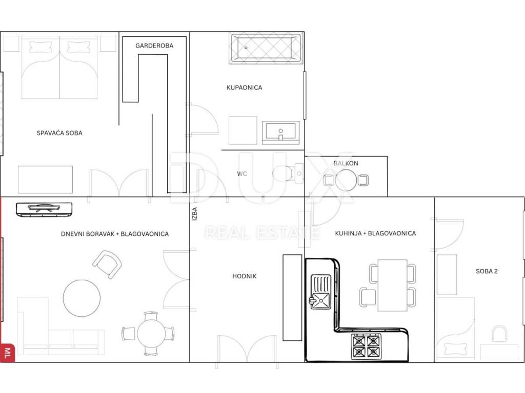 For sale is a charming apartment located in a quieter part of the wider center of Zagreb, near Sveti Duh. The space exudes warmth and airiness thanks to a cleverly designed layout that allows for a smooth flow between the rooms. The apartment consists of a living and private area that are discreetly separated, creating the impression of comfort and greater spaciousness. The bathroom is accessed from the hallway, but there is also a direct entrance from the bedroom with a walk-in wardrobe, which allows for additional privacy. With minor modifications, it is possible to form two completely separate bathrooms - ideal for a family or guests. Room layout: Hallway Bedroom Kitchen with dining room Balcony Study / children's room Living room with dining room Bedroom with walk-in wardrobe Bathroom with toilet The special feature of this apartment is the attic space above the bedroom, which offers additional potential for expansion and decoration according to your own wishes - whether as a work corner, reading room or small studio. The building also has a shared roof terrace overlooking the inner courtyard, which is located right next to the entrance to the apartment and is almost never used by other tenants. The apartment was partially renovated in 2025, with new joinery, renovated doors and modernized electrical installation, while all the materials for finishing the bathroom have already been provided. High ceilings further enhance the feeling of space, and the location offers proximity to all important amenities - public transport, schools, shops, parks and the city center.