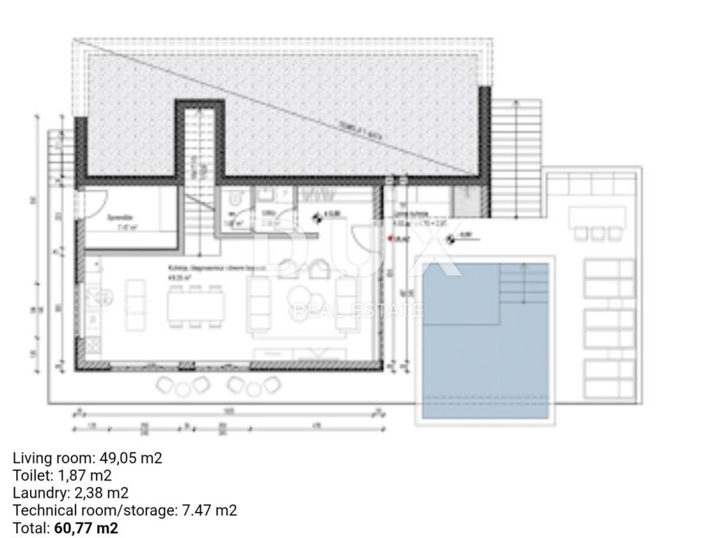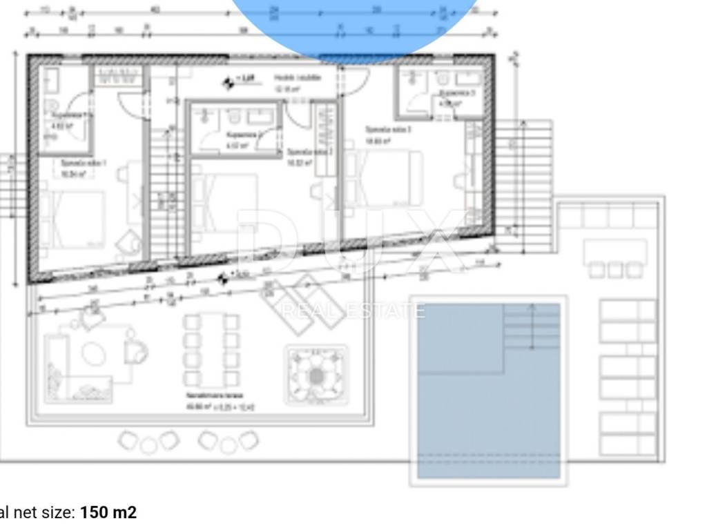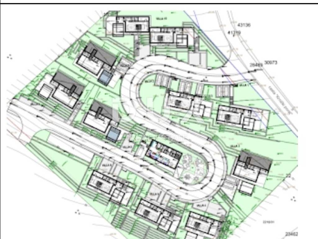 Za građevinski dio zemljišta postoji idejni projekt za izgradnju 10 villa sa bazenom.