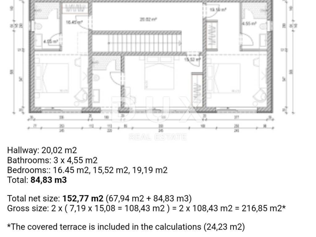 Minimalno 3 metra između vila i 4 metra od ceste u skladu je s urbanističkim propisima. Važno: To olakšava potencijalne buduće podjele na zasebne parcele (u slučaju da se odlučimo prodati vile u budućnosti) jer planiranje poštuje utvrđene udaljenosti.