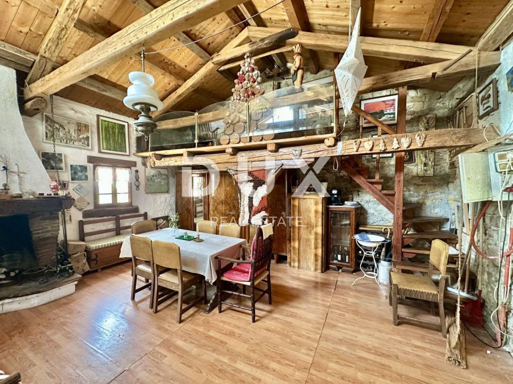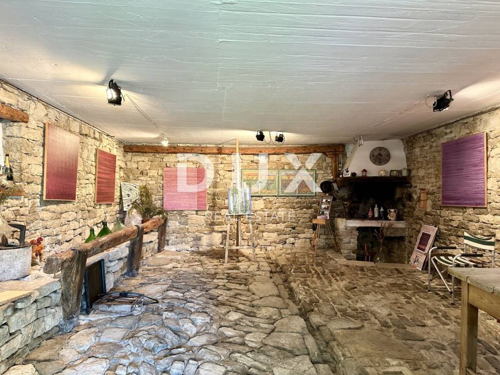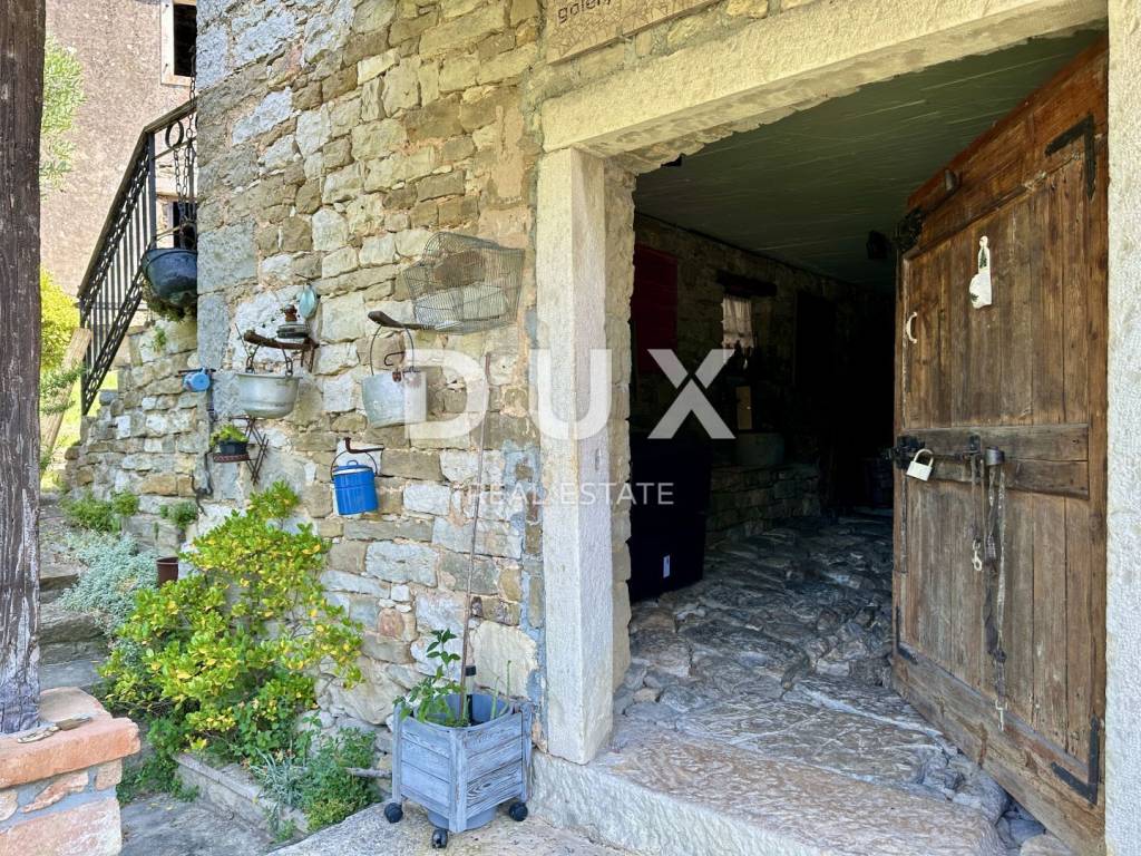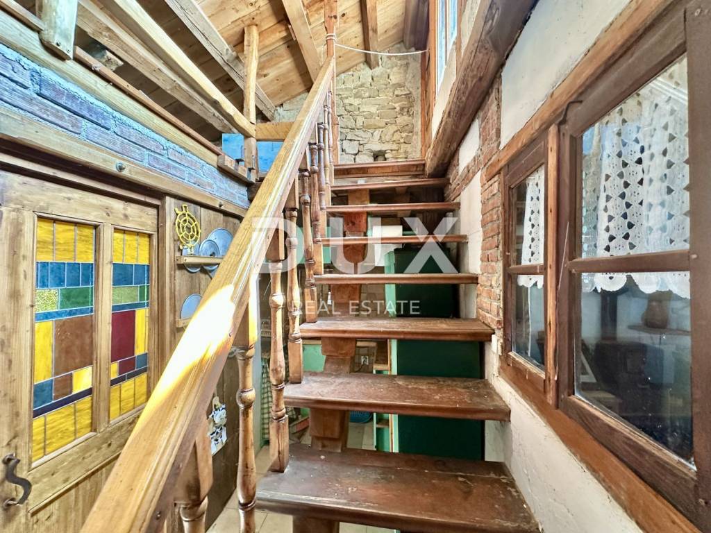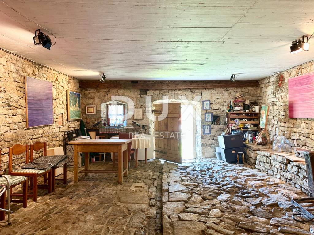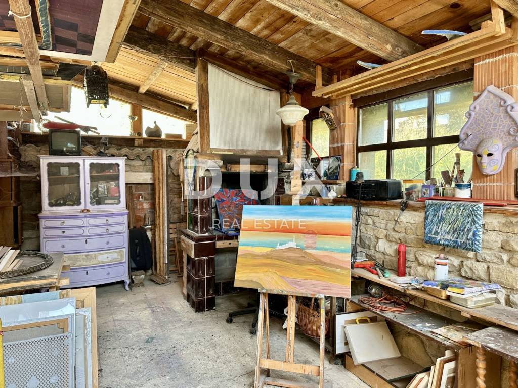 In a quiet location near Buje, nestled in nature and greenery, is this unique detached stone house that exudes character, history and personality. It is an authentic Istrian house whose previous owner was an artist - which is clearly felt in every detail of the space. With a total net area of 122 m, the house consists of three separate units. On the ground floor there are two studios - the larger one with an area of 47 m and the smaller one with an area of 19 m - ideal for artistic work, a gallery, a studio or even a tourist conversion. On this floor there is also an additional storage room and a separate toilet. External stone stairs lead to the first floor where you are greeted by a warm ambience with lots of light: a living room with a dining area, a bedroom, a fully equipped kitchen and a bathroom. The interior exudes rustic charm - visible wooden beams, natural materials, details that tell a story. An internal staircase leads to the roof terrace, which offers an open panoramic view of greenery, nature and the sea in the distance - an ideal place for relaxation, creativity or socializing at sunset. The yard of 215 m offers privacy, space for a garden, parking spaces and the additional possibility of decorating according to your own wishes. The house is fully legalized and ready for immediate occupancy. The heating is solved with a wood stove and fireplace, the water and electricity connections are active, and the sewage system is brought to the house - the connection remains to be completed. The approach is almost completely asphalted. This property offers a rare opportunity: a blend of traditional architecture, artistic flair and natural surroundings. An ideal choice for those looking for authenticity, inspiration and peace - whether for housing, vacation or tourist investment.
