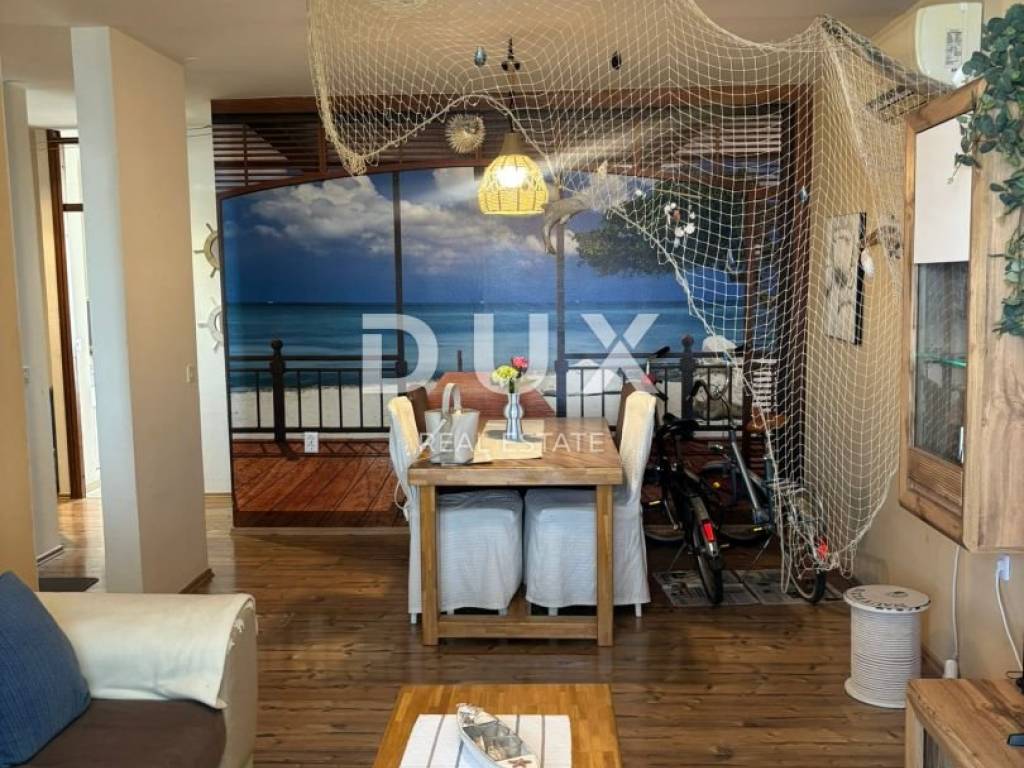 In the offer of DUX real estate, we present a beautiful apartment in an excellent location with a view of the sea that you will never lose! It is an apartment that offers you 62.22 m2 of living space and is located on the second floor. It consists of a hallway, bathroom, two bedrooms, kitchen, open space living room with dining room and direct access to the covered terrace. The terrace also has an outdoor small kitchen, so you can prepare delicacies in that part of the apartment with a direct view of the sea! Heating and cooling is solved through 3 systems. An air conditioner, a wood stove, and additional radiators were installed in the bedrooms. The apartment is sold furnished. Move-in possible from September 1, 2025. Ownership 1/1. No burden. We are at your disposal for all other questions as well as the organization of sightseeing!